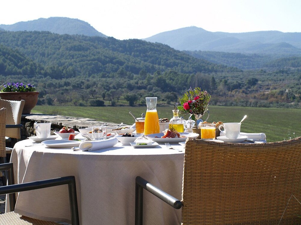 The focus of the hotel is the kitchen where all food is prepared and where breakfast is served around a large table for guests to converse with each other. Dinner is served either outdoors, weather permitting, or in the lovely formal dining room. Quality of food is excellent with an extensive wine cellar.