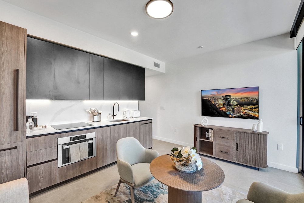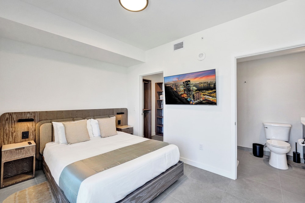 Vi bodde i en hjørne leilighet med fantastisk utsikt. Hotellet er nytt i 2025. Meget bra gym og flott basseng. Super beliggenhet med gåavstand til North beach og til koselige lokale butikker. Vi hadde det helt topp!