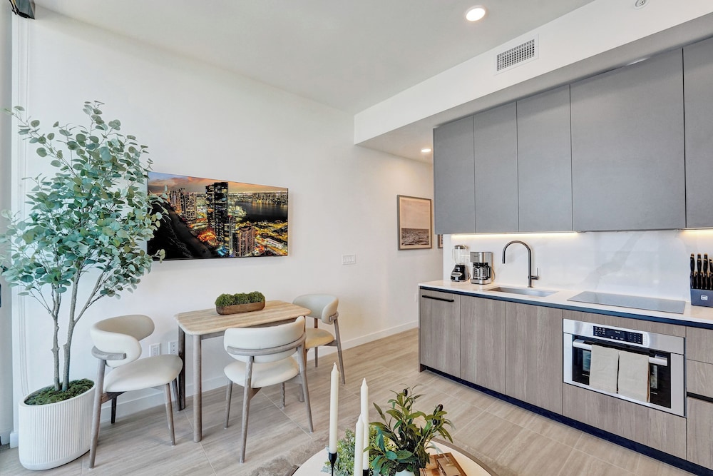 The building itself is brand new, which makes for a modern feel and the amenities were quite nice and clean. The apartment itself was clean and had a nice layout. The location is still up-and-coming so there’s ongoing development in the area. Currently there no outfoor furniture on the balconies and adding some would really improve the experience. Unfortunately, the hot water never got hotter than lukewarm. Overall, it’s a comfortable luxury/modern spot with potential but it still feels like a work in progress with overall operations as it is an acting apartment complex as well.