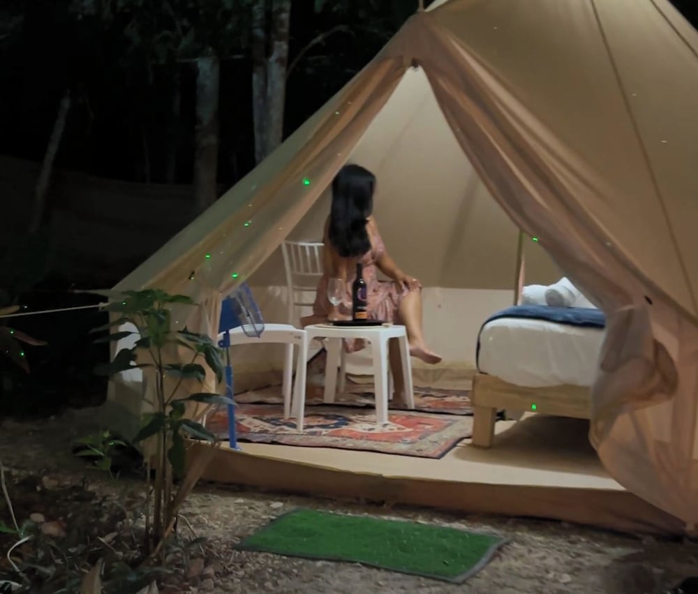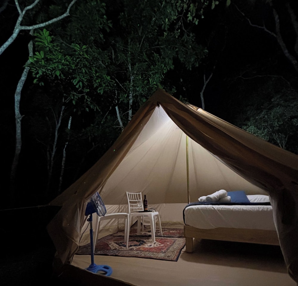 It' a very nice and quiet place with well furnished tents (the bed is very comfortable!). The kitchen is well stocked and clean, so are the bathrooms and showers (hot water is working well).