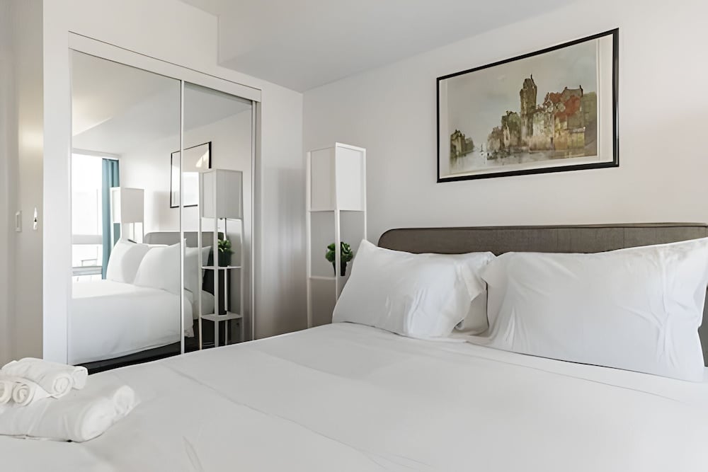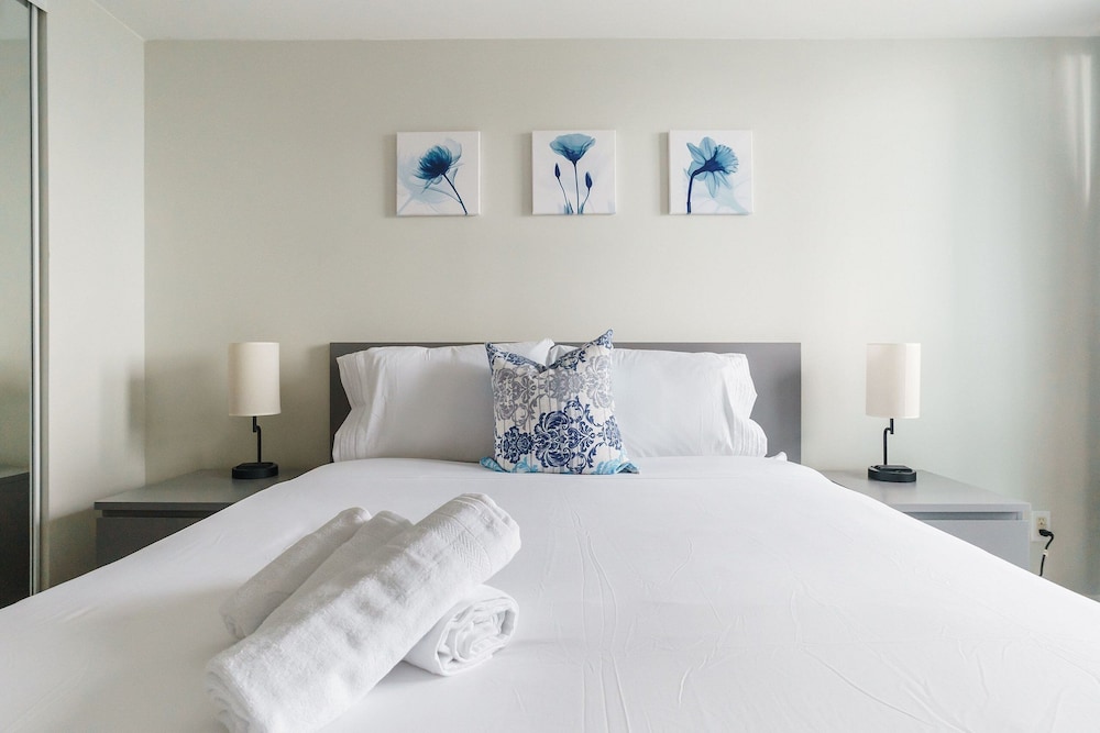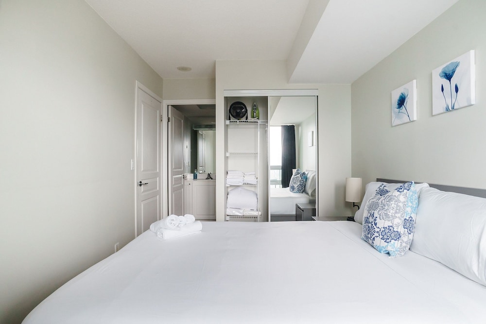 While I'd love to share a review on Lanterra Downtown in Yonge St, this is not possible as our reservation was changed at the last minute to a different property. Despite booking about three months ago, we were informed just days before check-in that the property we had selected was "double booked". Really? We were instead given an "upgrade" to 21 Iceboat Terrace, some distance away. It did have a fabulous view but the apartment itself was more shabby than chic. The bedroom carpet was badly stained, the vertical blinds were broken and the pillows way beyond their use-by date. It also lacked the laundry I'd wanted after five weeks away from home. When the key fob wouldn't operate in the lift, we had to rely on a kindly security guard to let us up to the 23rd floor after dinner. Efforts to contact a Lanterra rep to fix this were ignored. This last-minute switch tactic has never happened to me in all my years of booking through Expedia. Disappointing to say the least. Beware of the eleventh-hour "upgrade"!