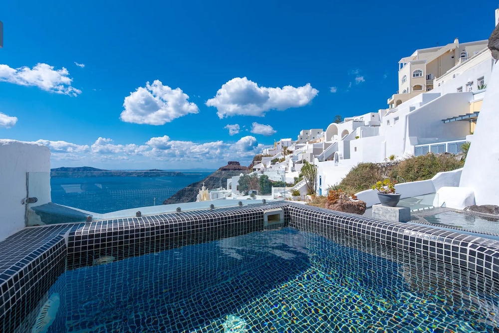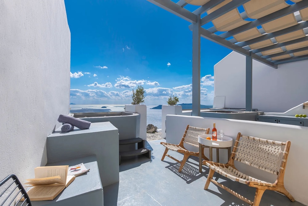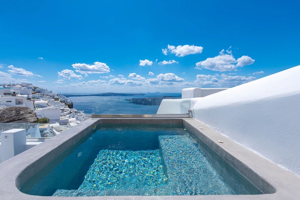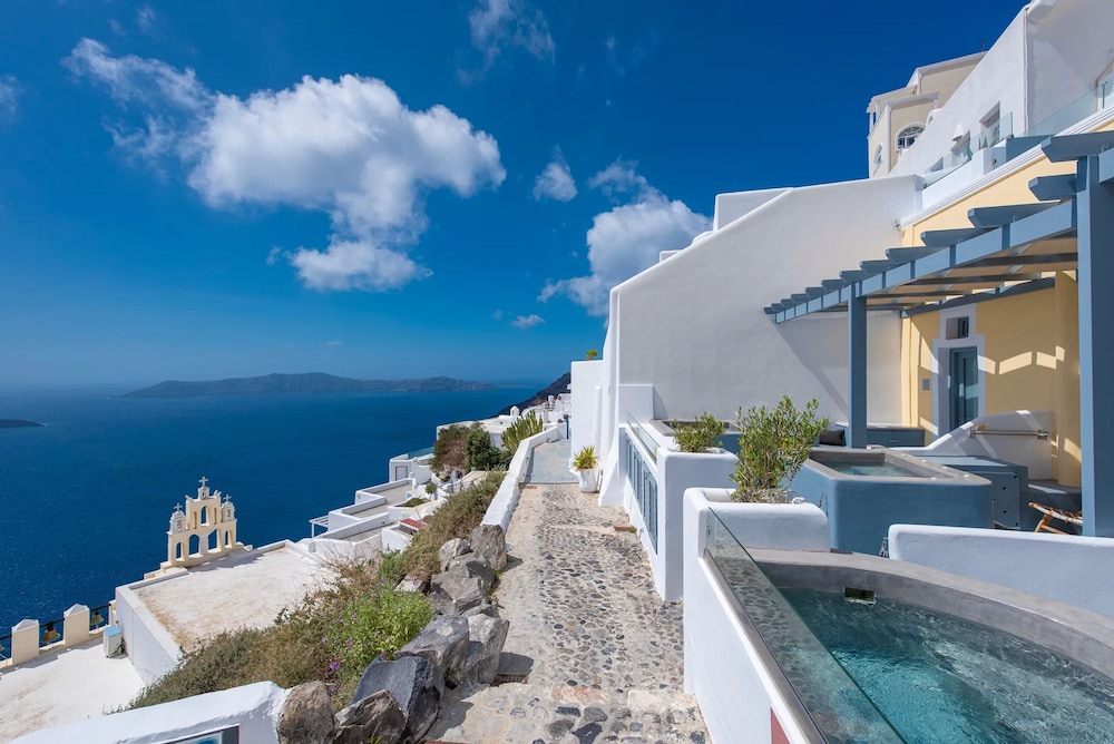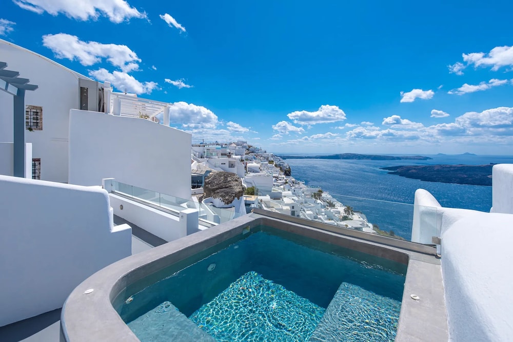 Experience the enchanting beauty of Santorini at Hommage Suites With Caldera View & Hot Tub, where luxury meets breathtaking views.