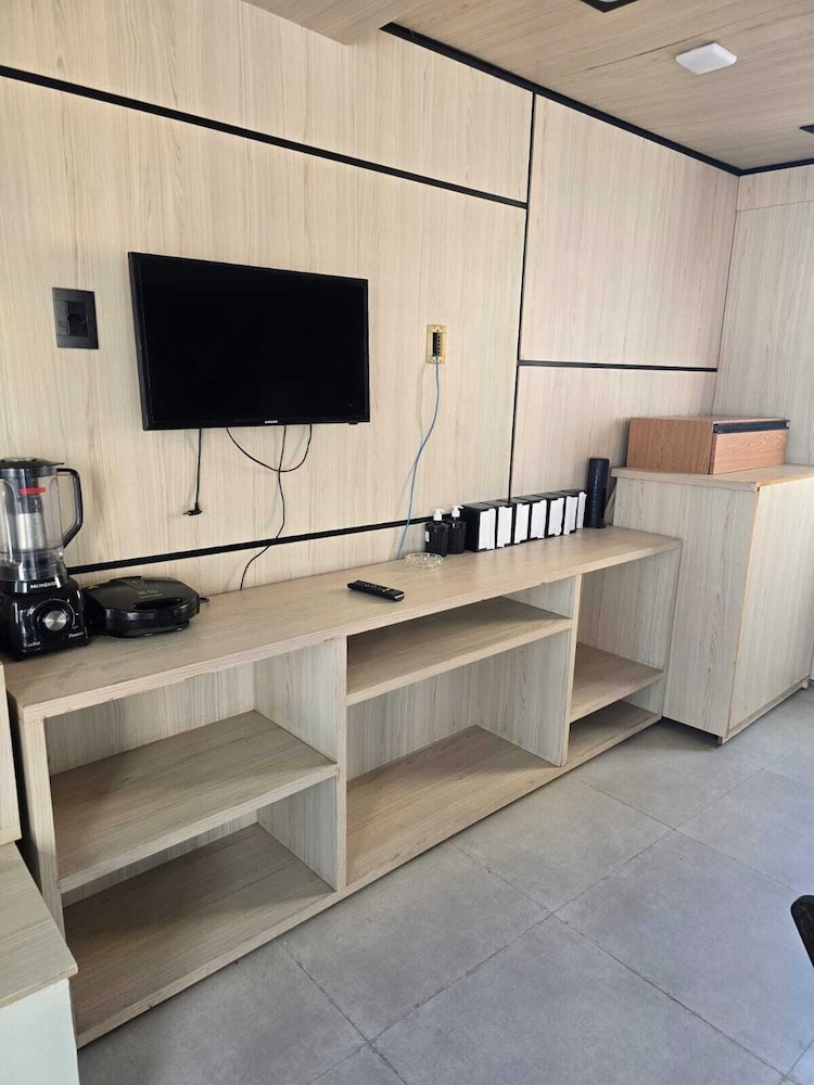 Internet ruim. Havia uma barata na parede. Chiveiro nao esquentava e saía pouca agua. Banheiro ficava todo molhado após o banho. So havia um paninho no chao do banheiro, que nao secava. Nao havia toalha de rosto. Nao havia espelho no banheiro. A saida de ar do banheiro era um buraco na parece pra fora (quebrado mesmo. Sem acabamento). Eu tropeçava toda vez que ia ao banheiro. O piso sobe uns 5cm na divisa.