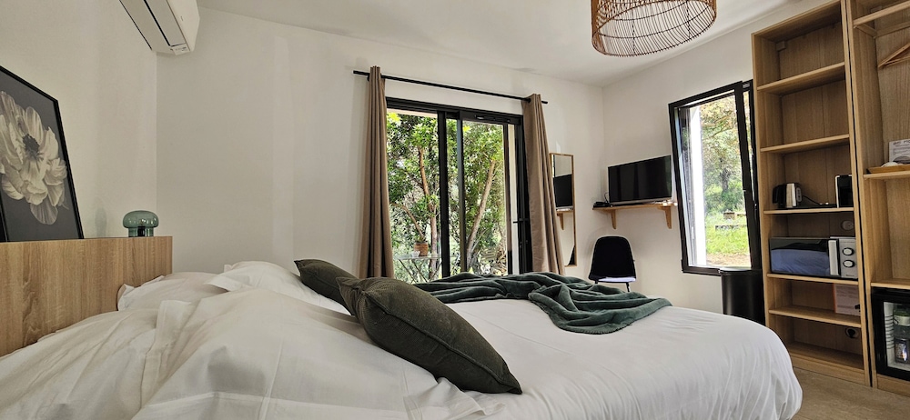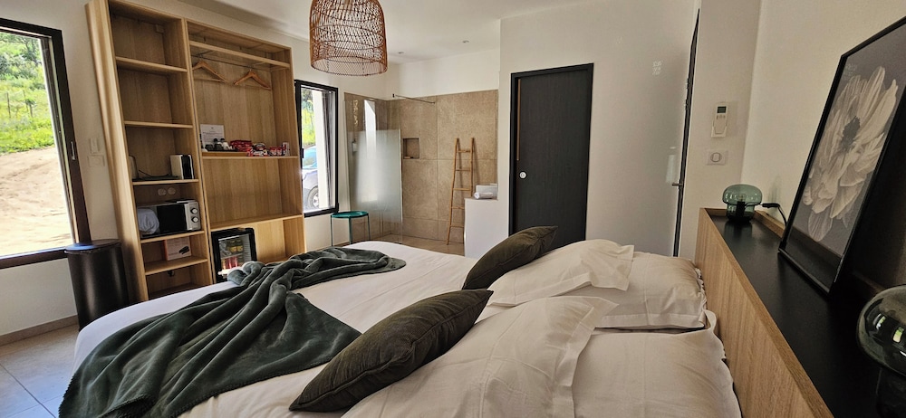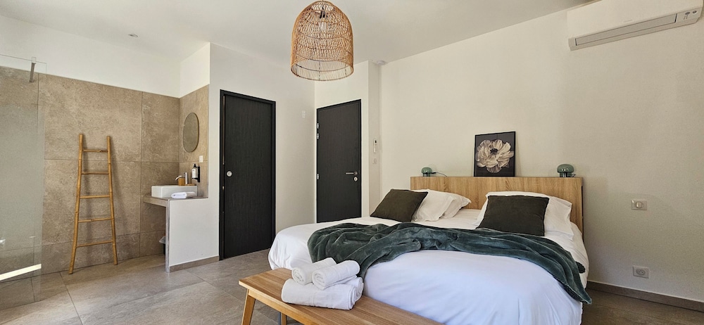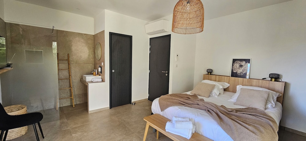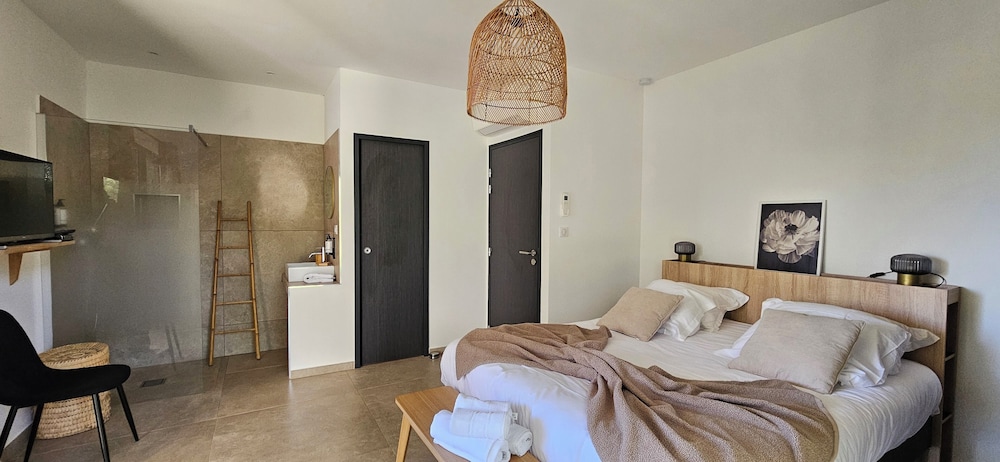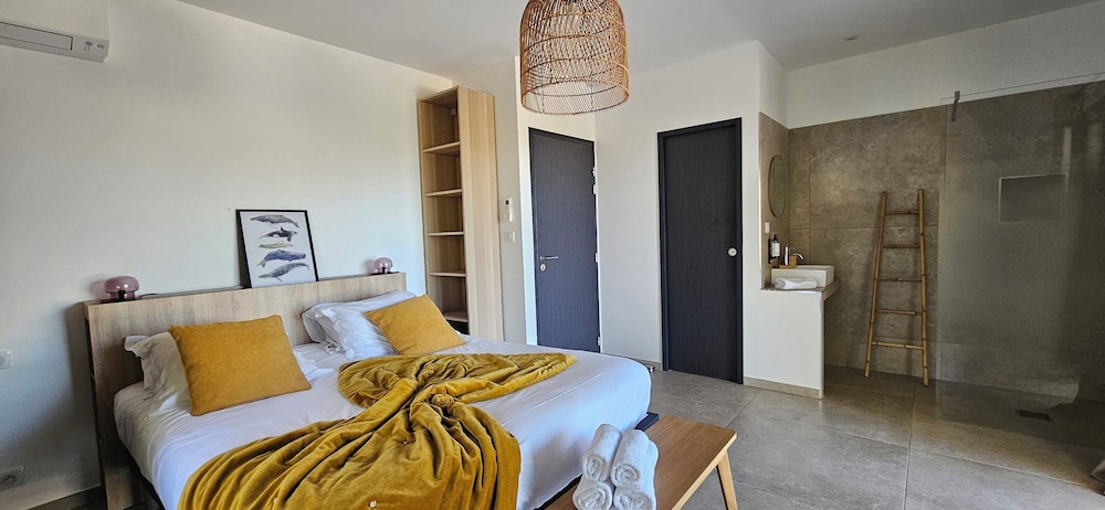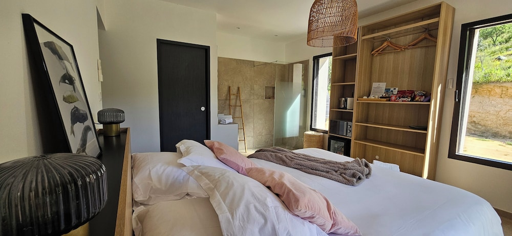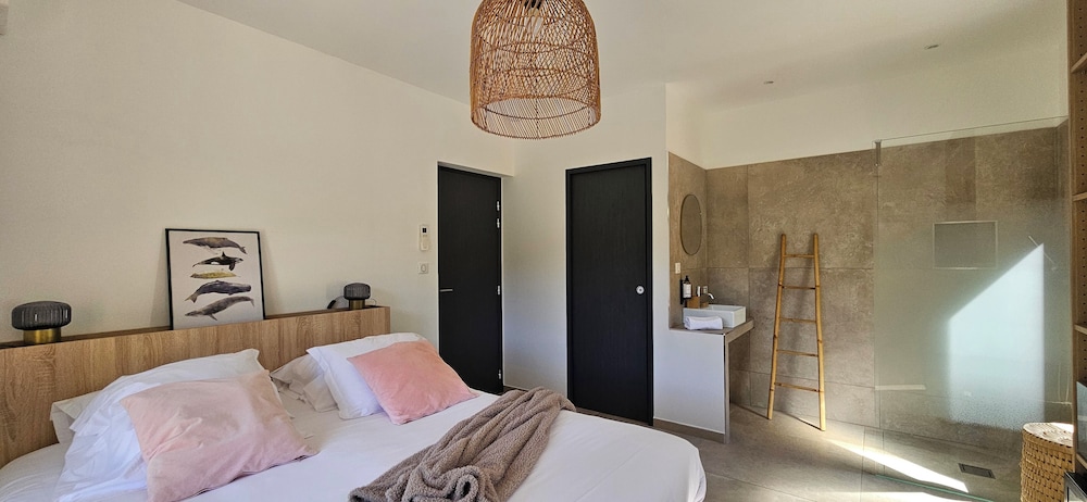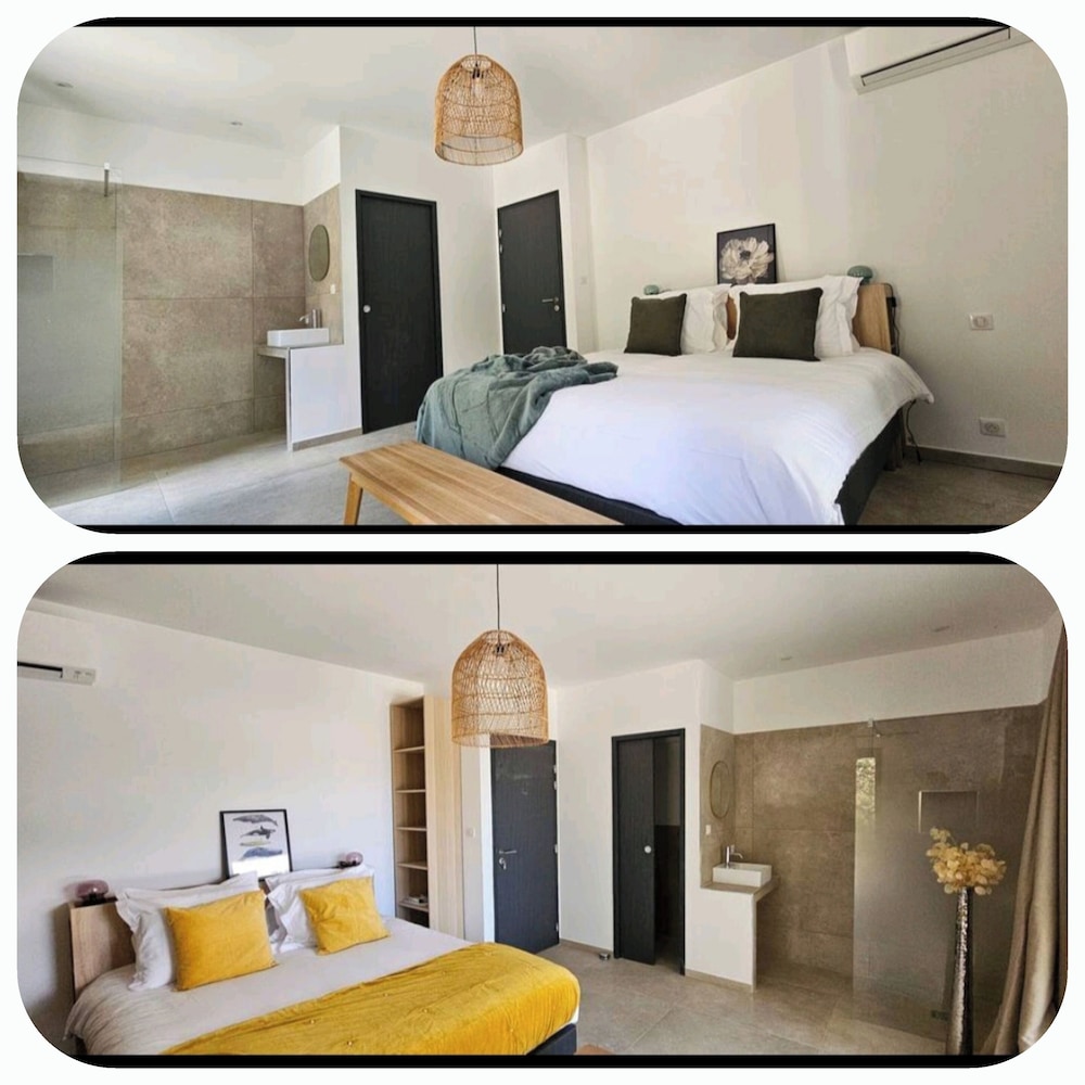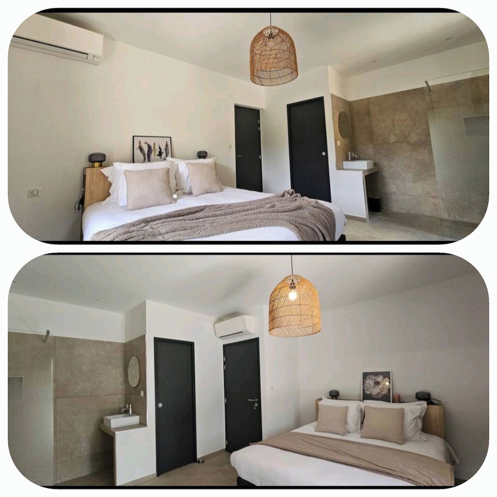 2 petis bémols pour la salle de bain dans la chambre, manque d'intimité. Et piscine juste devant les autres terrasses.