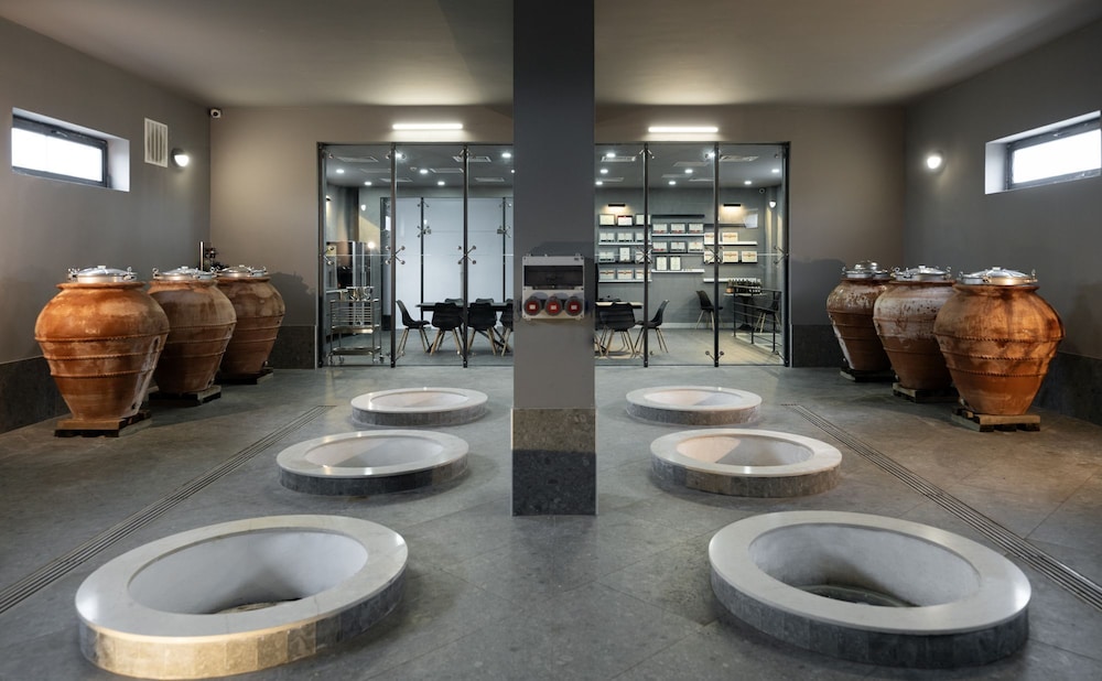 The winery itself deserves special mention. Hotel guests are offered a complimentary tour of the winemaking facility, and the wine tasting with a Tamari becomes a captivating journey into the culture and philosophy of Georgian winemaking — full of stories, aromas, and flavors.