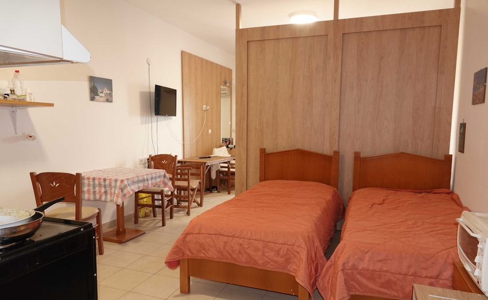 A very nice family apartment with exceptionally courteous staff, located in a village next to "Fry" called "Arvanitochori". We booked a four-bed room, which was quite spacious and felt like having two separate double rooms. The apartment had all the essentials (fridge, air conditioning, a small oven – it even had an iron for clothes).