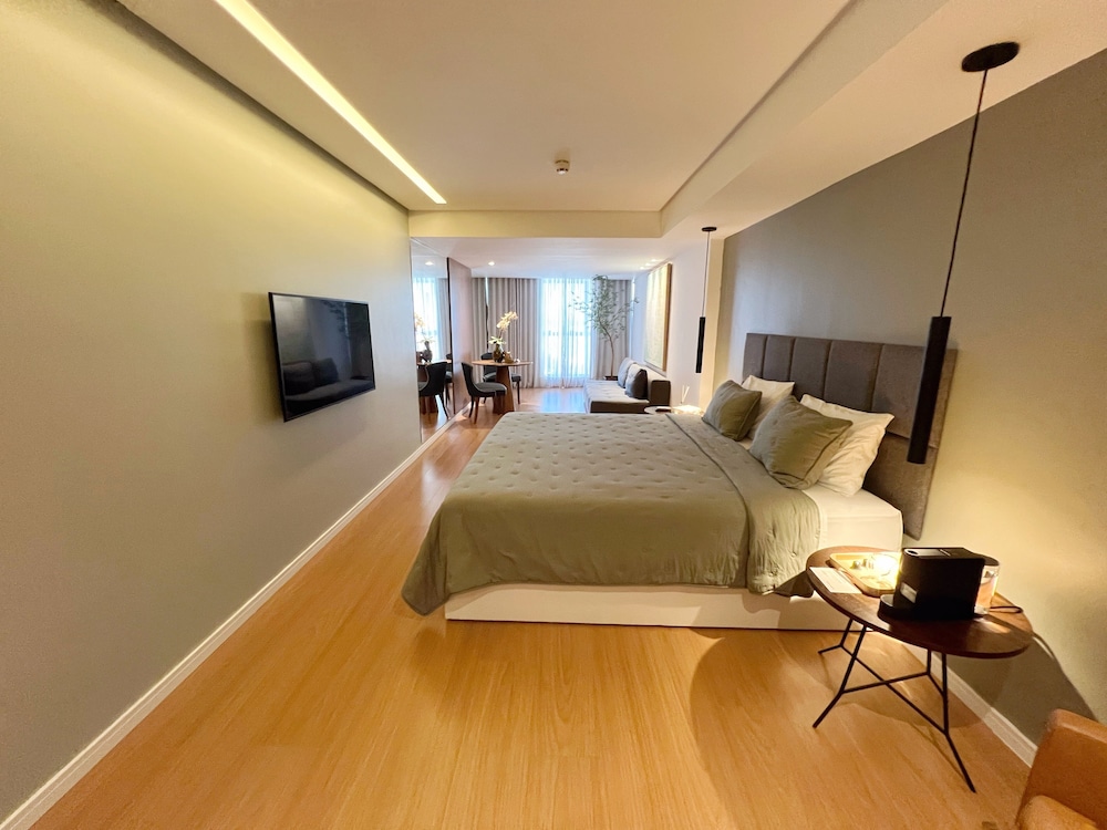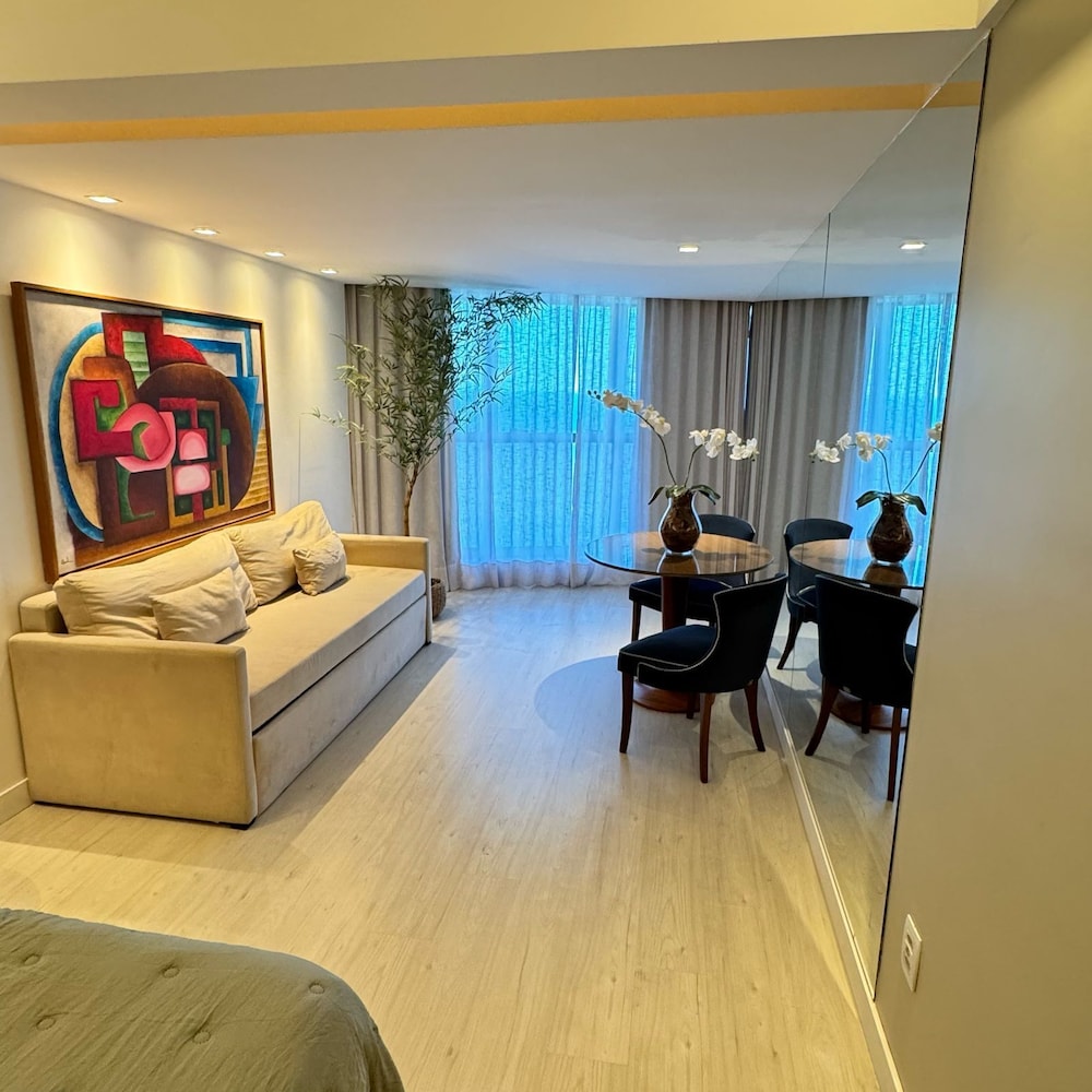 Quarto belíssimo. Vista linda e local de fácil acesso. Restaurantes próximos e deliverys rapidissimos. Indico com toda segurança. Voltaremos mais vezes.