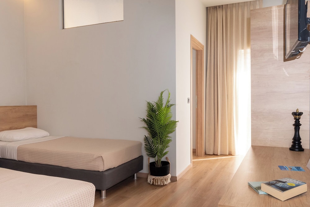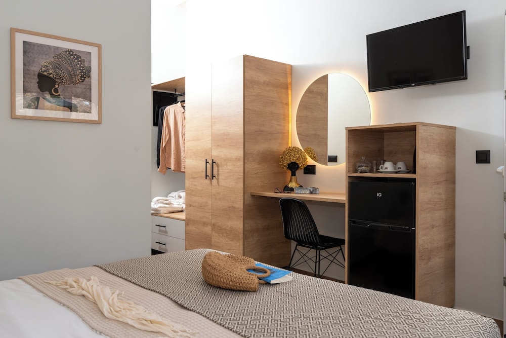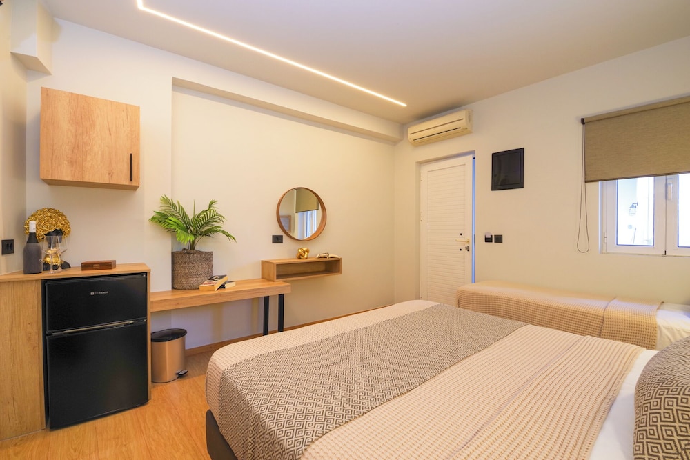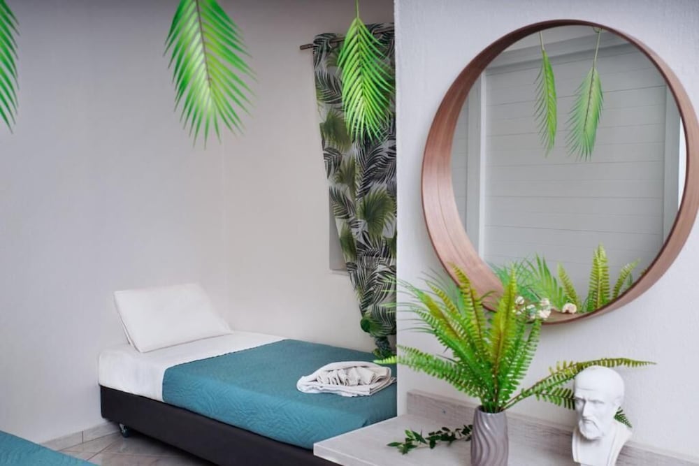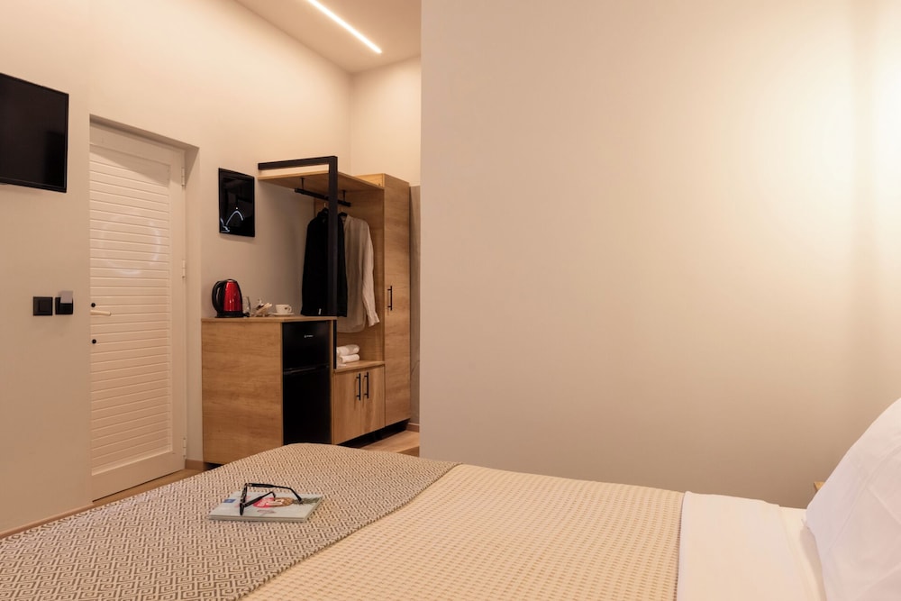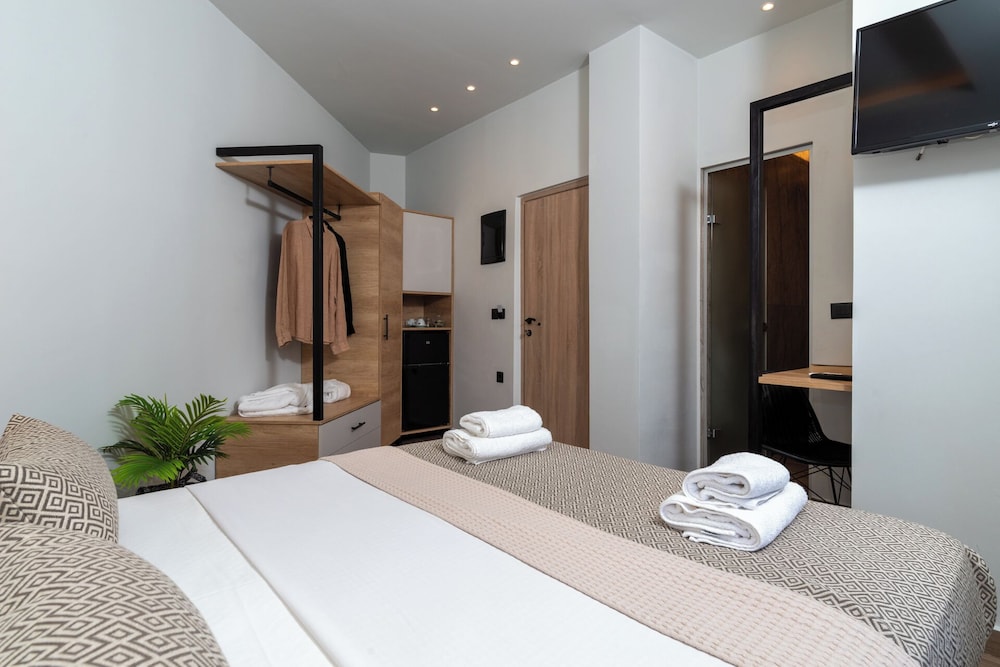 Clean and minimalistic, just used as a place to shower and change for a couple of hours before flying home. Staff were very friendly and helpful but they did say they would put our luggage in our room when it had been cleaned, which they didn't. The luggage was kept behind the wall of the bar but open to the side street. When we went back many hours later they hadn't been put in the room and our belongings and bags could have been taken, which was a worry. They gave us the top room and there are many steps which was very difficult with heavy luggage.The room was clean and tidy and George was very helpful settling us in and said we had an upgrade which was nice.