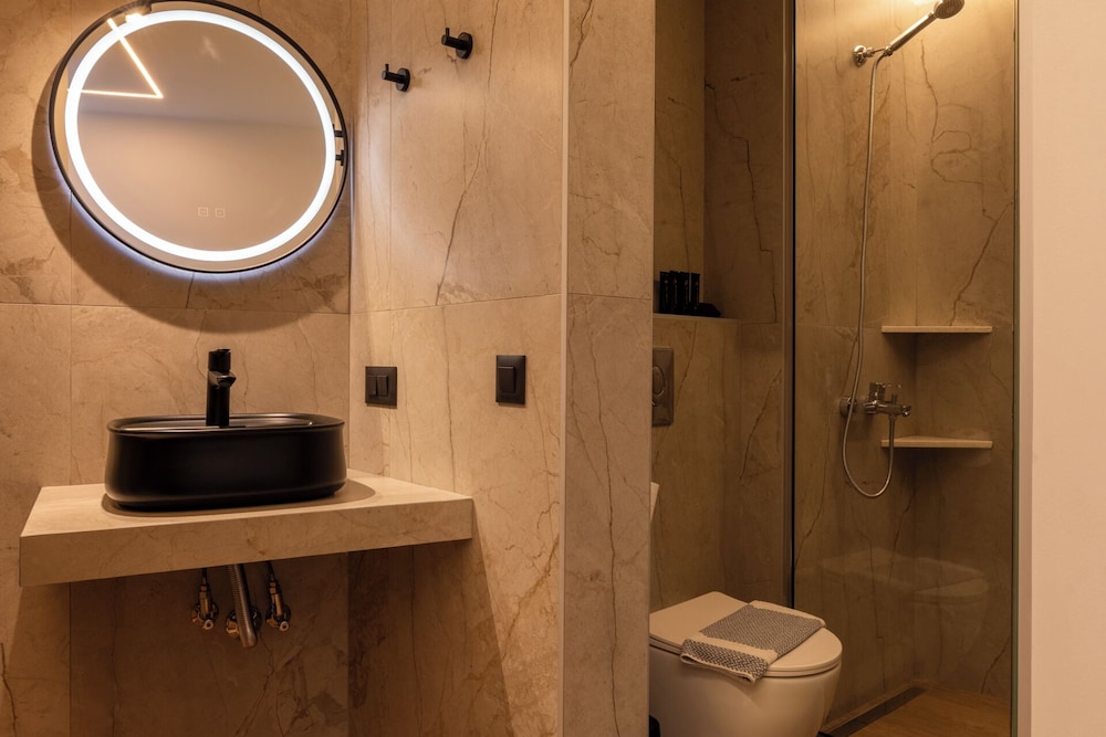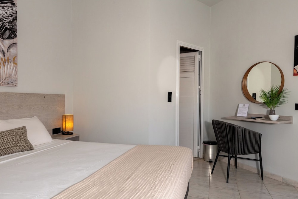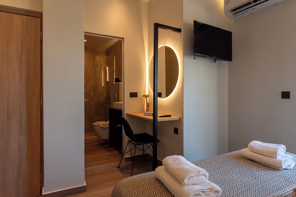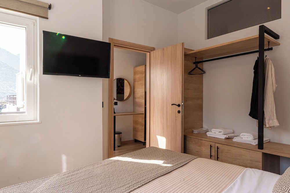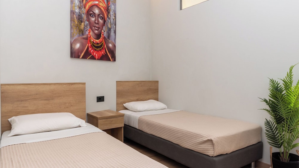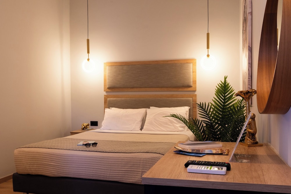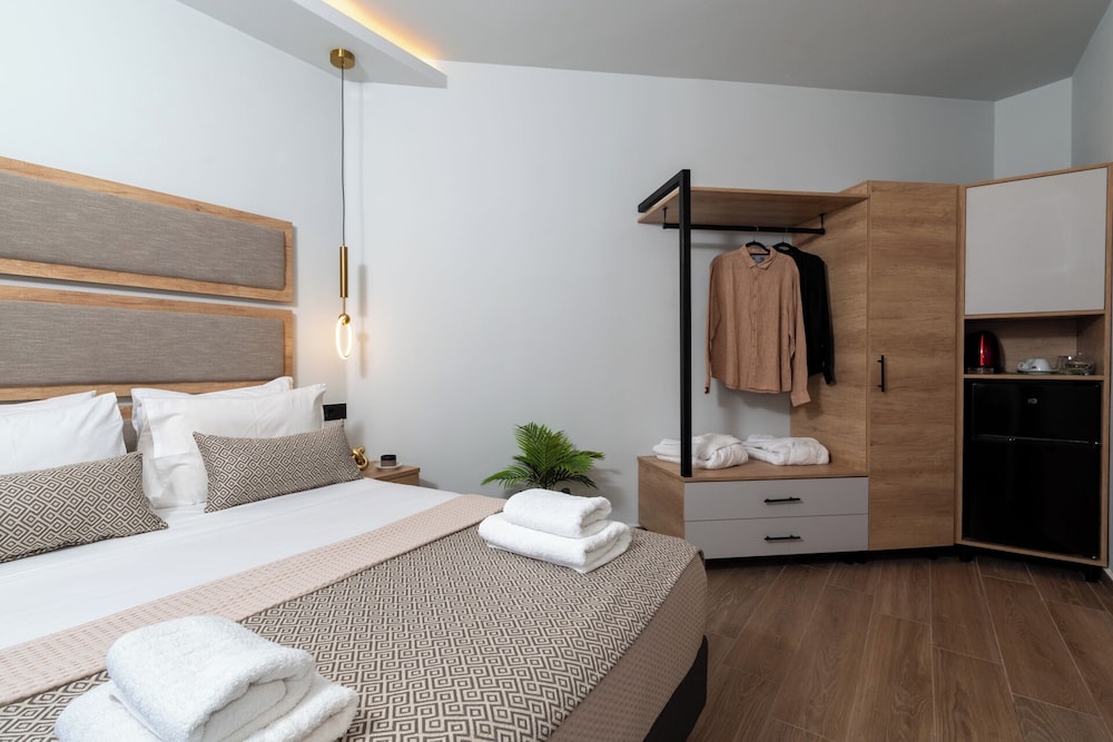 Clean and minimalistic, just used as a place to shower and change for a couple of hours before flying home. Staff were very friendly and helpful but they did say they would put our luggage in our room when it had been cleaned, which they didn't. The luggage was kept behind the wall of the bar but open to the side street. When we went back many hours later they hadn't been put in the room and our belongings and bags could have been taken, which was a worry. They gave us the top room and there are many steps which was very difficult with heavy luggage.The room was clean and tidy and George was very helpful settling us in and said we had an upgrade which was nice.