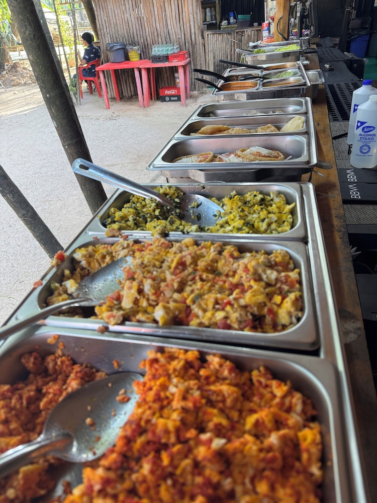 Very pleasant outdoors, good food, excellent pool, comfy beds but.. no air conditioner! That was a big let down in the tropical, him I’d weather of Quintana Roo! Our room did not have mosquito screens in door and window, so we couldn’t even have some outdoor wind moving around the room. It was a rough night.