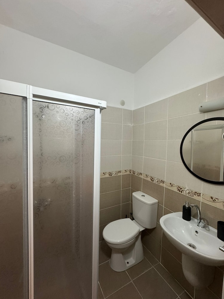 Valizlerle gelen biri için üç kat valiz çıkartmak zorunda kaldığımız, aile işletmesi, güler yüzlü insanlar ama eksikler çok odada ayna buzdolabı koltuk masası eksik, kahvaltı çok iyiydi, duş suyunun ve klozetin suyunun az akmasi sıkıntı . Çok temiz ortam yatak yorgan yastık hepsi gayet yeni ve temizdi , aileler için gidilebilecek bir işletme .