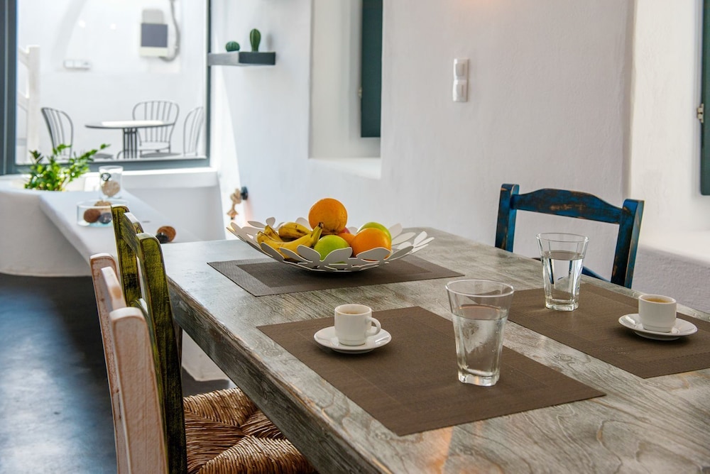 Unwind in our inviting guestrooms, each equipped with a refrigerator and microwave, allowing you to enjoy the comforts of home while soaking in the beauty of Santorini.