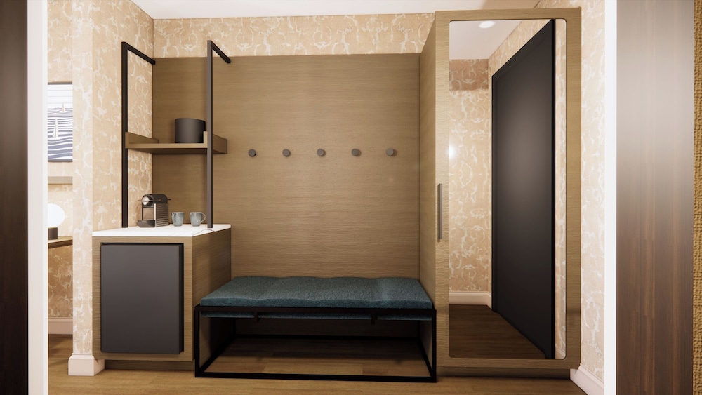 The property is adjacent to a food hall with excellent options for a family: tacos, pasta, seafood, sushi, coffee, sweets... and even a full service bar. Overall, the hotel was nice and the check-in was easy. The only problems were a sticky residue on the bed-side table and a hairball in the shower... We would definitely stay again though.