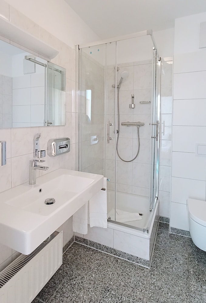 Hissen fungerade inte. Borde framgått vid bokningen. Badkar med dusch utan halkmatta. Kändes mycket halkigt att kliva i oc ur badkaret när man duschade. Vid incheckning blev vi lite tråkigt bemötta när vi inte direkt förstod instruktionerna på tyska.