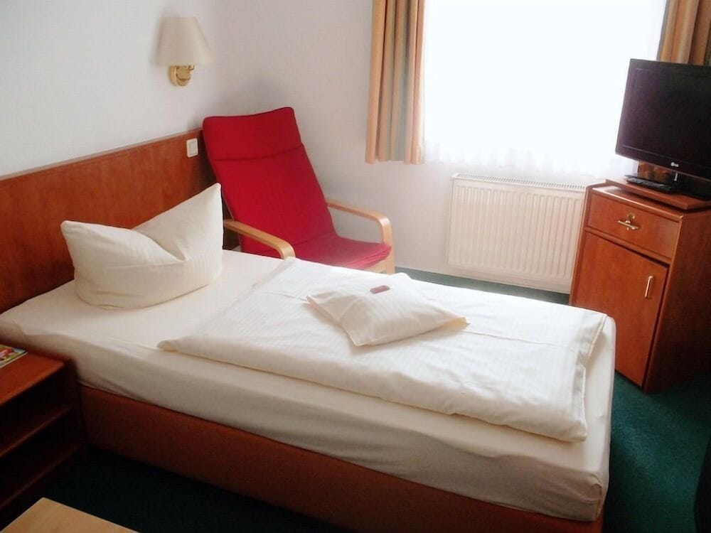 Wir waren für eine Veranstaltung im Kongresszentrum in Wernigerode und haben dieses Hotel gebucht, weil es einerseits gute Bewertungen, einen akzeptablen Preis hatte und direkt neben dem Zentrum liegt. Parkplätze sind vor dem Haus ein paar, die zum Gebäude gehören, aber wesentlich weniger als Zimmer, so dass wir abseits parken mussten, was abgesehen von einem nahen Parkhaus etwas schwierig ist, da die komplette Gegend entweder Anwohnerparkplätze mit entsprechendem Berechtigungschein oder mit Parkuhren zugepflastert ist. Der Empfang im Haus selbst war überaus freundlich, das Zimmer größer als erwartet und sinnvoll eingerichtet. Es stehen Wasser, (Instant-)Kaffee und Tee (inkl. Wasserkocher) zur Verfügung. Das Bad war ausreichend groß und alles sauber. Es gibt einen modernen Fernseher ausreichender Größe. Das WLAN haben wir nicht getestet. Das Frühstück ist einfach nur Klasse und lässt wirklich keine Wünsche offen, egal ob Eier, Würstchen, Käse, Wurst, Müsli, Jogurt, Obst oder aufgeschnittenes Gemüse. Ganz klare Empfehlung! Wir haben selten in Wernigerode zu tun, aber wenn, werden wir wieder hier sein.