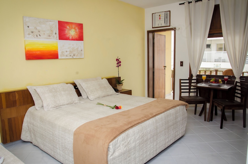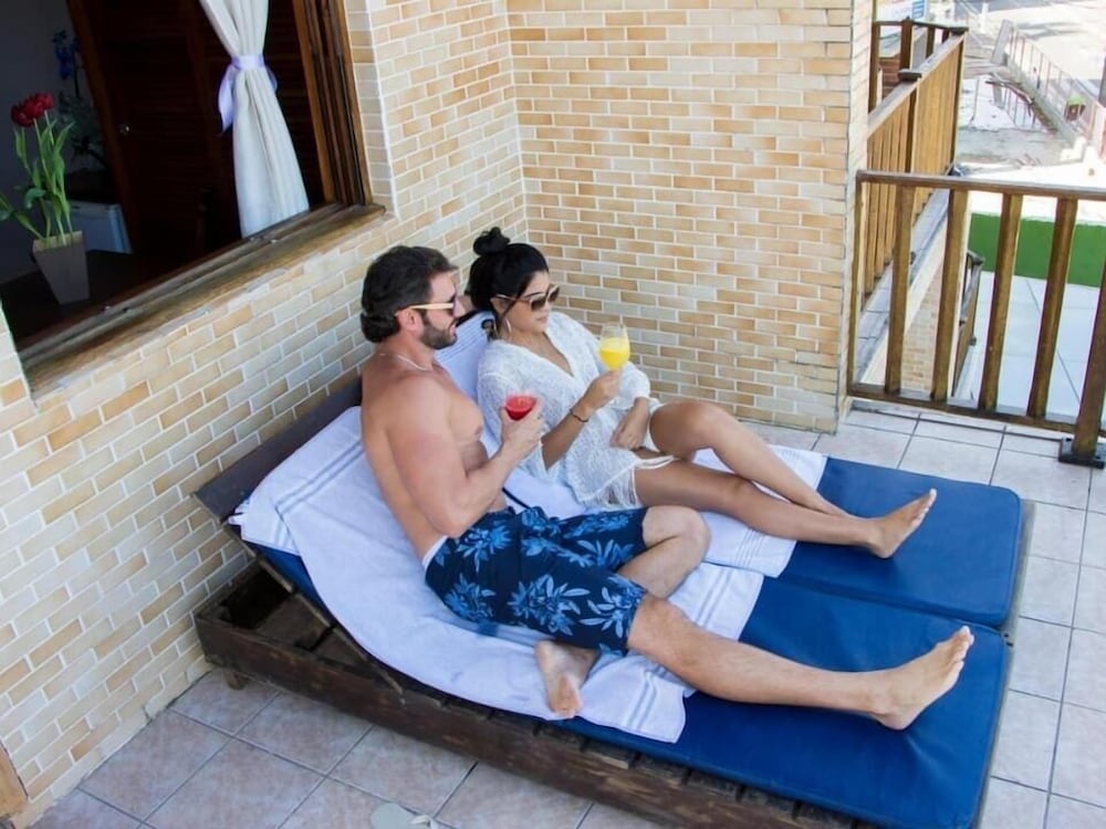 Varanda grande com vista para o mar. Lindo acordar com esse visual. Funcionários extremamente simpáticos e prestativos. Fomos muito bem recepcionadas e atendidas durante todo o tempo de estadia. Café da manhã excelente com bastante variedade.