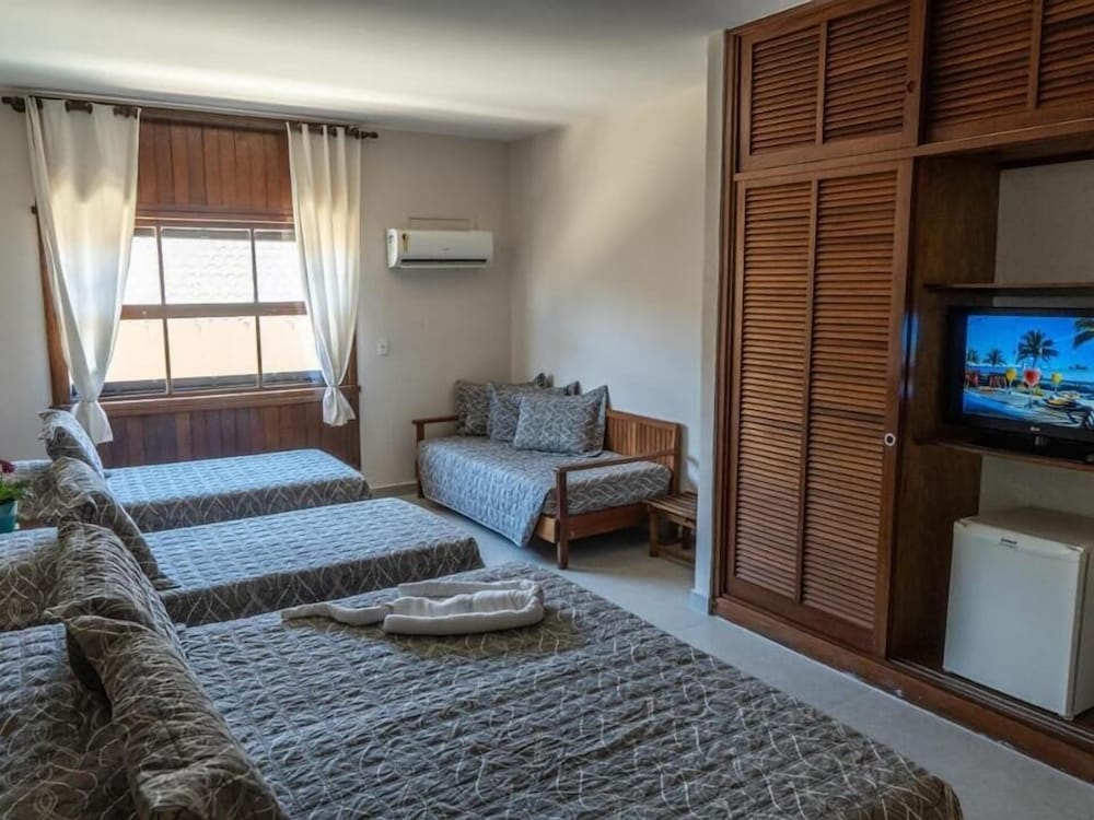 A localização do hotel é incrivel, na frente da praia do tombo, pé na areia! Dou nota 10 pra localização, mas os servicos em si posso dar 7, liberaram a entrada pro quarto, mas não fez check-in no sistema do hotel, com isso o wifi nao funcionou ate ele fazer no sistema, a tv nao funcionava, o telefone tbm nao, falamos na recepção que mandou um tecnico que olhou e falou: é realmente nao esta funcionando, vou avisar a recepção! Ué, isso eu mesmo fiz kkkkk o café da manhã bem simples, abriu as 7, desci as 7h40 e quase nao tinha mais nada!