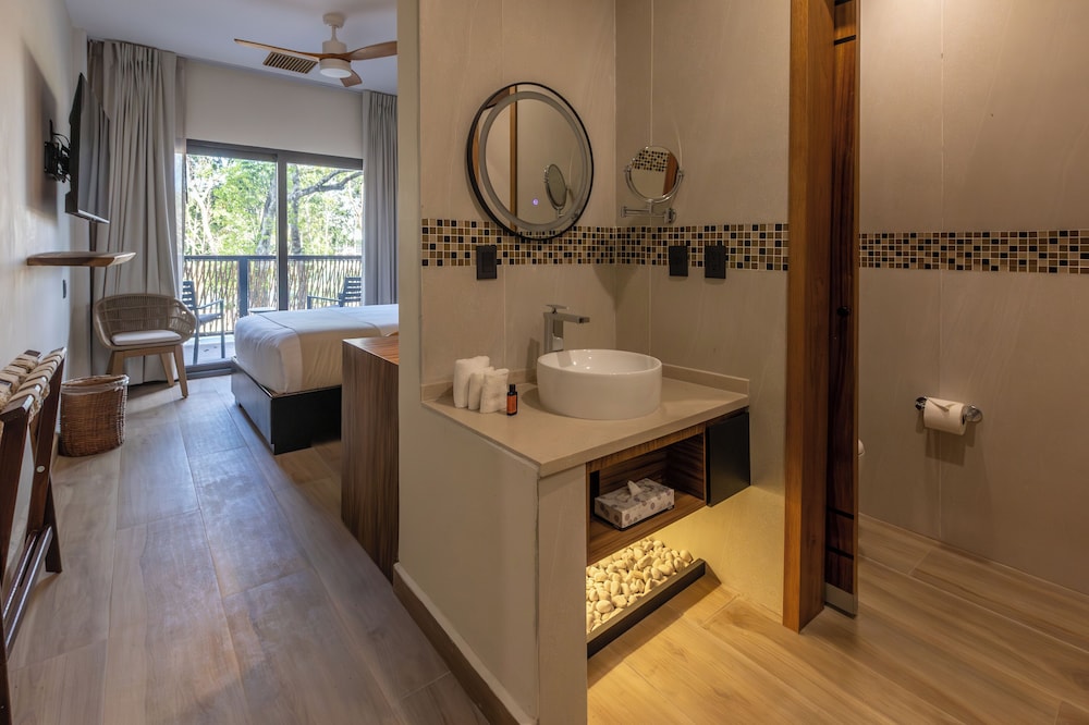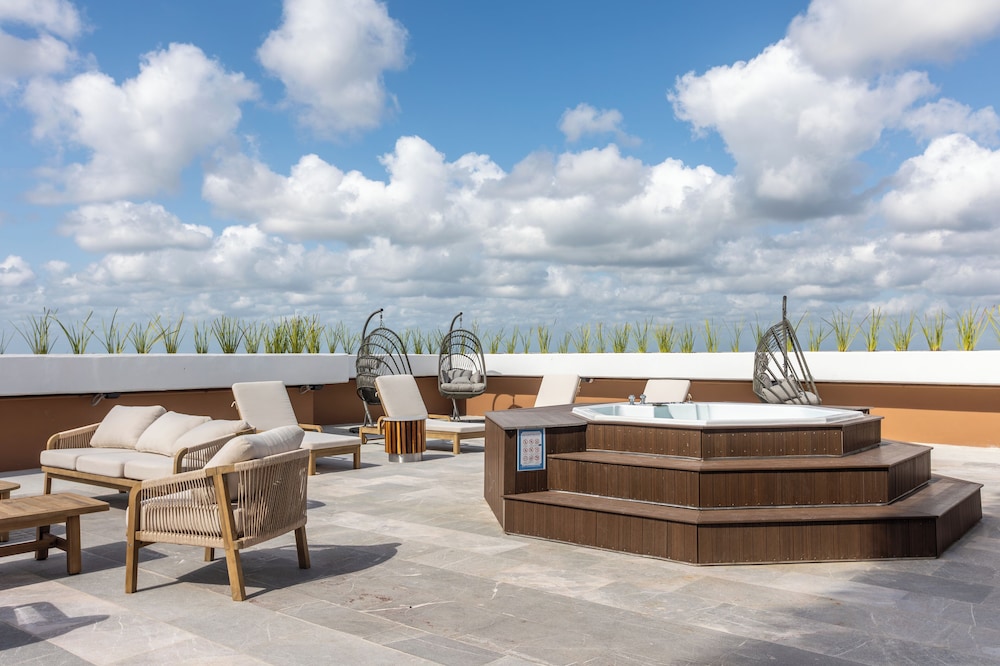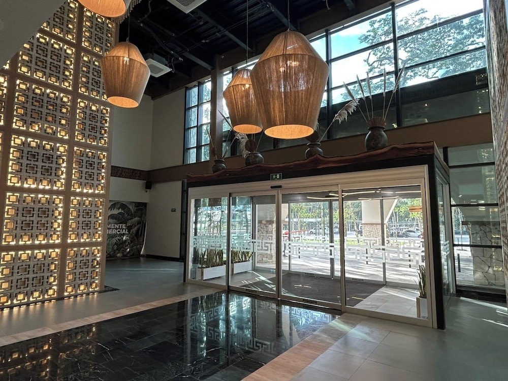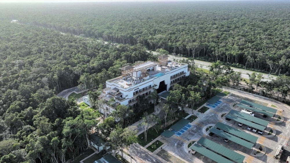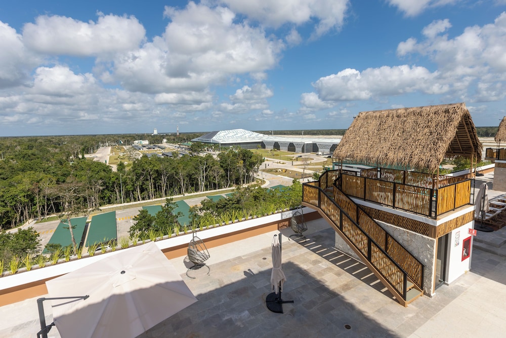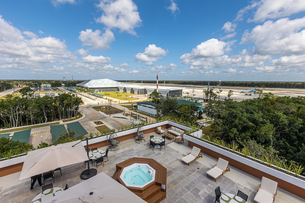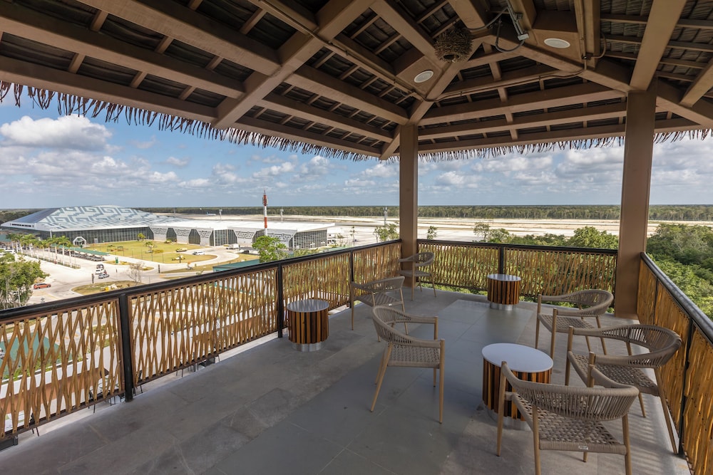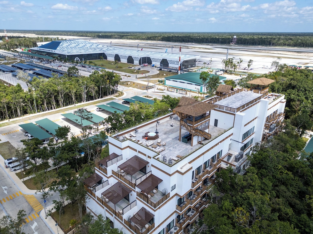 I was SO impressed with this hotel. I needed a place to crash at the Tulum airport after flying in and booked this place having no idea how nice, new, and convenient it would be!!! It’s literally in the same parking lot as the airport. As soon as you walk out BOOM, there it is!!! It was built within the last year so everything is nice and new. There’s a beautiful rooftop area with lounging, a restaurant, and pool/hot tubs! A total bang for your buck! Super happy with our stay!!! We ended up staying a night before we flew out too just because it was so convenient being so close! Highly recommend.