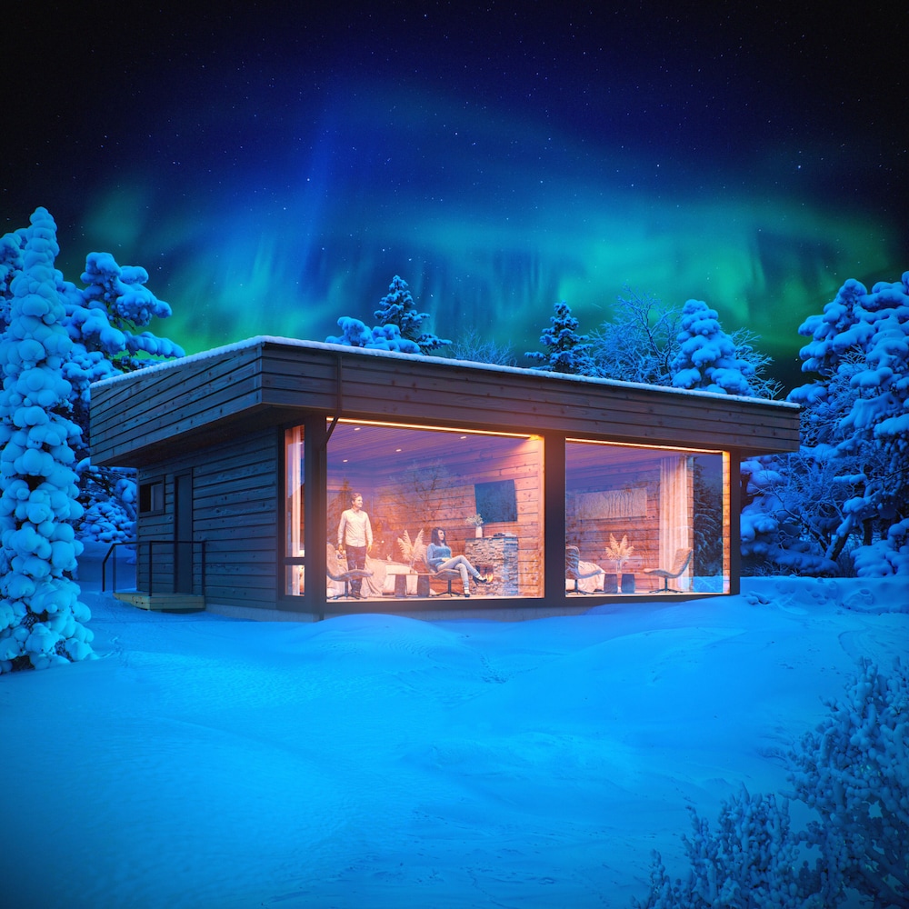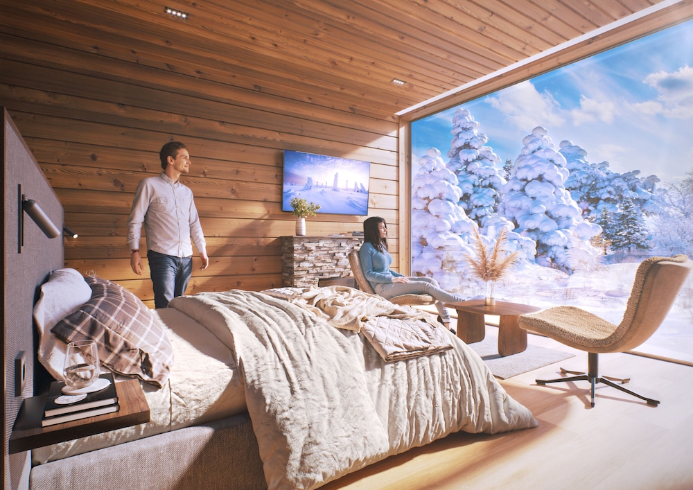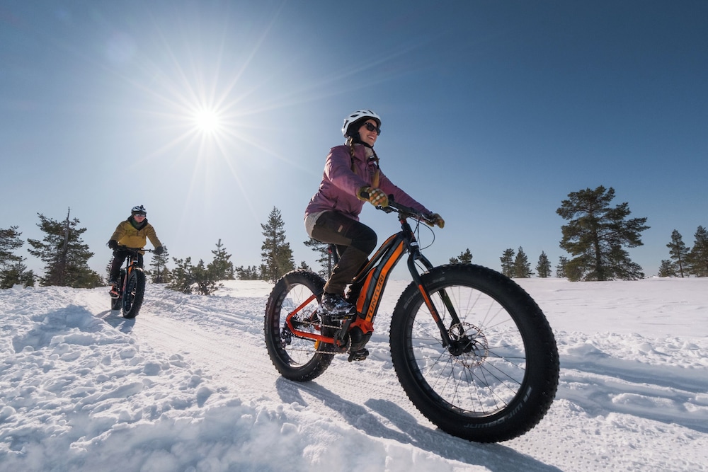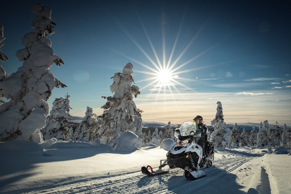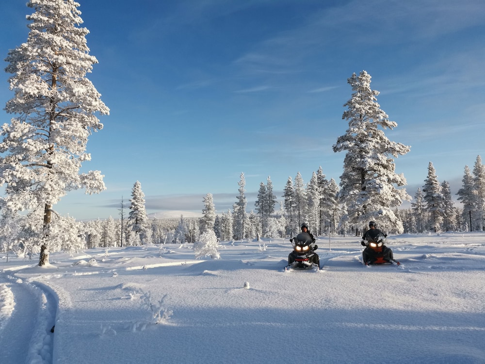 Unleash your adventurous spirit with on-site activities like mountain biking, snowmobiling, and snowshoeing, all set against the breathtaking backdrop of the Finnish wilderness.