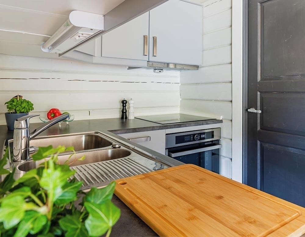 Tipico cottage norvegese ben attrezzato. Parcheggio davanti al cottage. Due camere ma entrambe con due letti. Un matrimoniale sarebbe opportuno. Ottimo ristorante della struttura e ottima colazione
