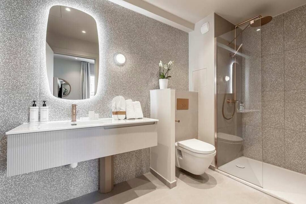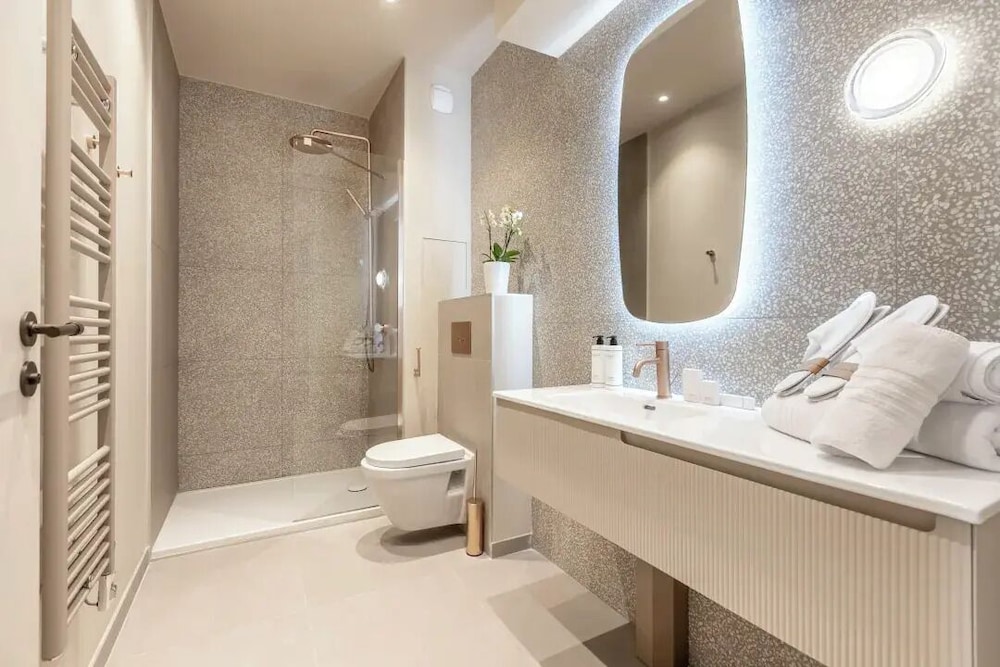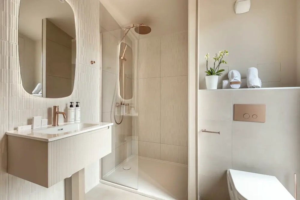 Rooms are slightly small, typical of Paris. Bathroom was bigger than expected. Only slight issue with the shower since there is no door and a very small lip to prevent water from seeping out. I imagine this is more a problem for cleaners and maintenance longer term.