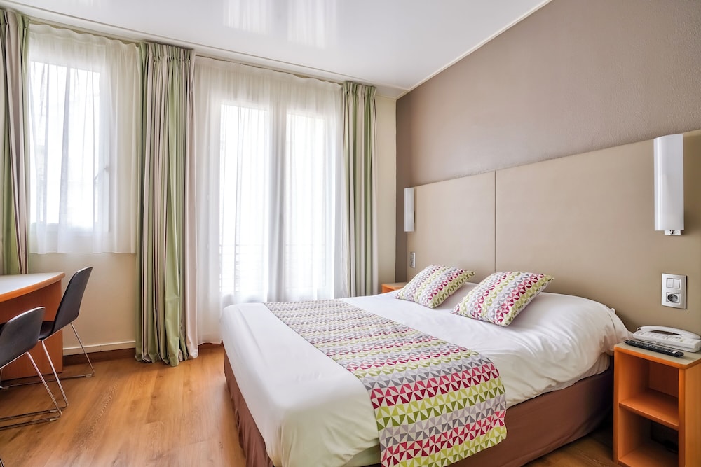 O hotel Campanile é uma excelente opção custo/benefício. Sua ótima localização possibilita acesso fácil a linhas de metro e ônibus, te levando a qualquer lugar da cidade. Ao seu redor você vai encontrar restaurantes, lojas, mercados e até uma estação com estrutura de shopping (Gare Montparasse). O café da manhã é bom, com ovos, queijos, pães, etc. O quarto que fiquei era pequeno, apertado, poderia ser maior, mas com cama aconchegante e um bom chuveiro. Recomendo!.