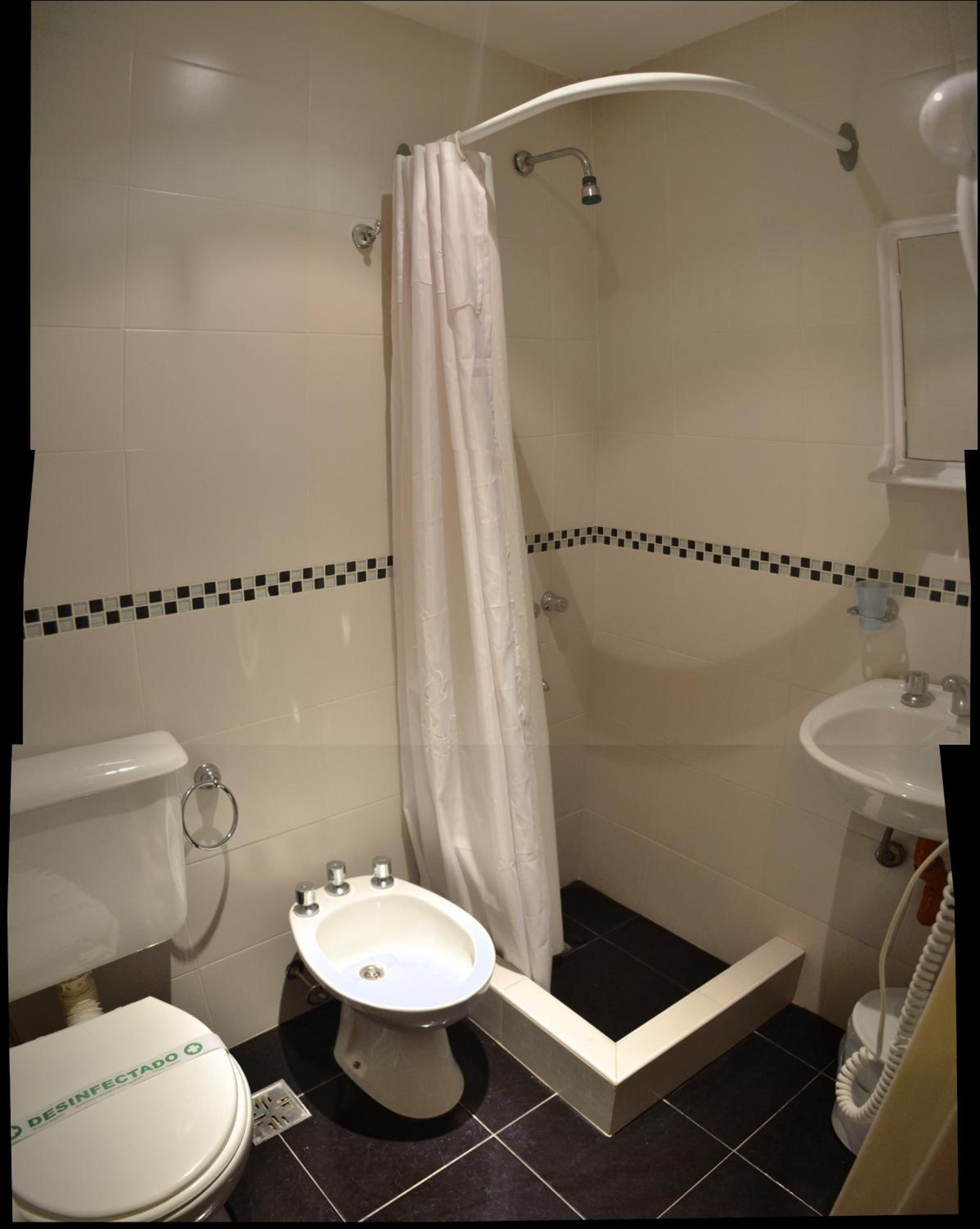 Ubicacion, higiene de habitación/edificio. Baño sin ningun desperfecto con ducha que (y escasean.los casos) permite utilizarse sin derramar una sola gota de agua al exterior.