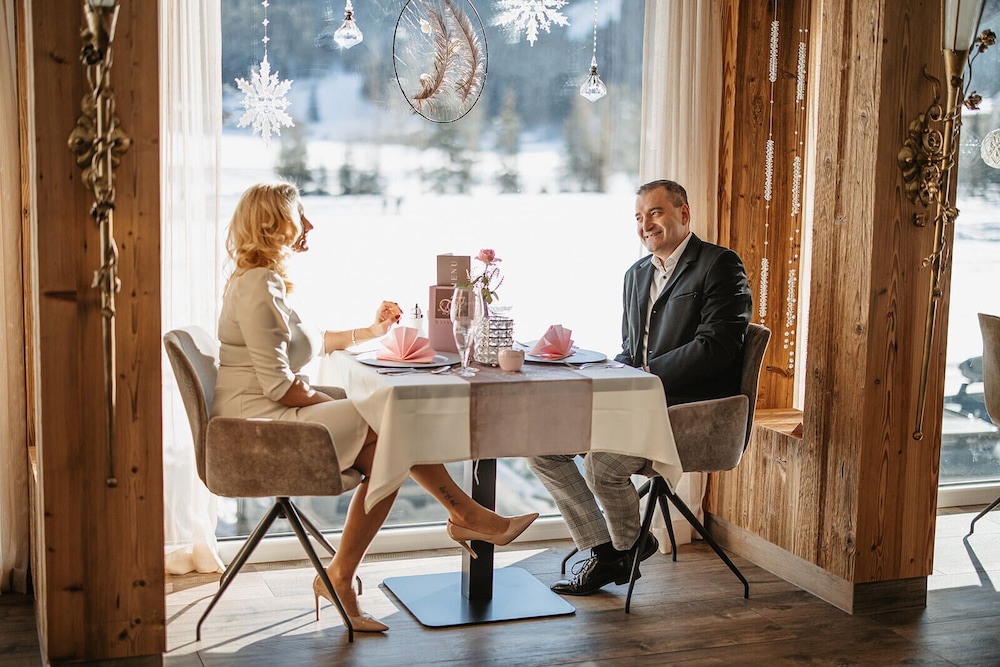 Retreat to one of our 40 stylishly appointed rooms featuring heated floors, private furnished balconies, and modern flat-screen televisions, ensuring a cozy stay after a day of exploring the magnificent mountains.