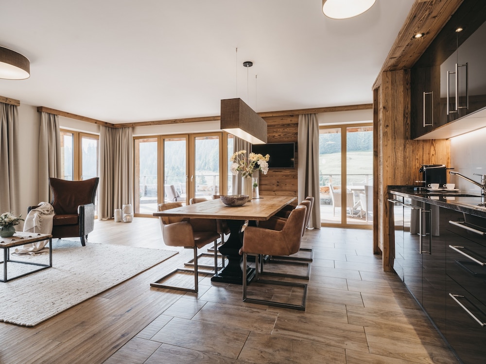 Bei Ankunft haben wir ein Upgrade erhalten, da das Hotel nicht ausgebucht war. Rezeption- und Restaurant-Service waren exzellent! Große Zimmer sehr gut ausgestattet. Leider gab es auch Punkte, die uns nicht gefallen haben: Zusätzliche 99,- EUR für eine Endreinigung zu berechnen sind sehr überzogen, wenn man den Arbeits-Stundensatz in Österreich betrachtet. Ich bin mir sicher, dass das Appartement nicht 5 Stunden gereinigt wird (5Std. x 20€). Hier bereichert sich meiner Meinung nach das Hotel zusätzlich, da es in 6 Tagen auch keine Zwischenreinigung gab. Bei der Halbpension gab es an 5 von 6 Abenden exakt das selbe Gemüse (Auswahl und Zubereitung) zur Hauptspeise. Keine Abwechslung, das geht in dieser Hotelkategorie ebenfalls nicht. Abendessen und Frühstück waren aber ok. Aus diesen Gründen kann ich keine 10 Punkte vergeben. Ansonsten wären diese erreicht worden.