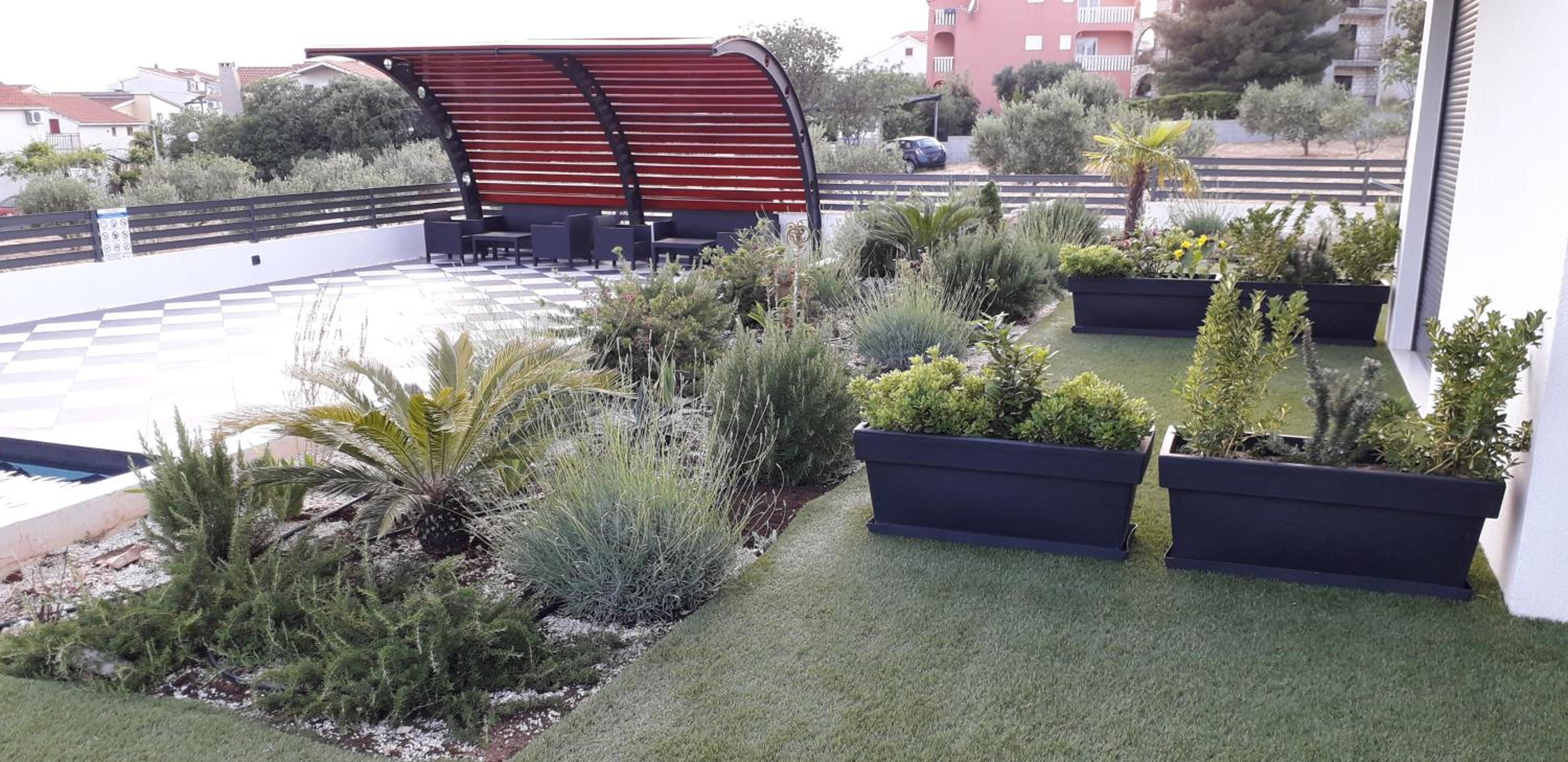 Indulge in tranquility at VILLA JANE INN's garden and terrace, perfect for relaxation and unwinding after a day of exploring Rogoznica.