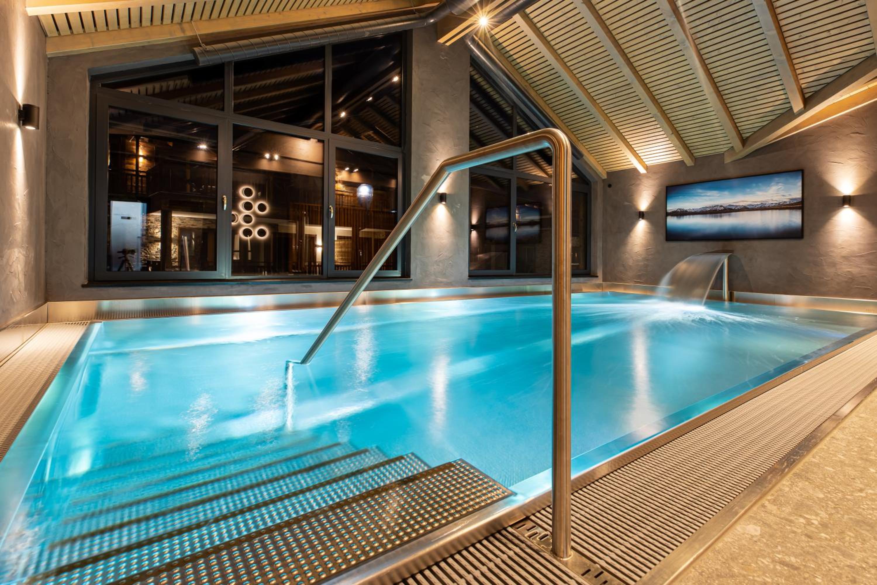 Zentral gelegen, direkt neben Gondelstation und Spar. Pool und Saunen zum Entspannen nach dem Ski fahren.