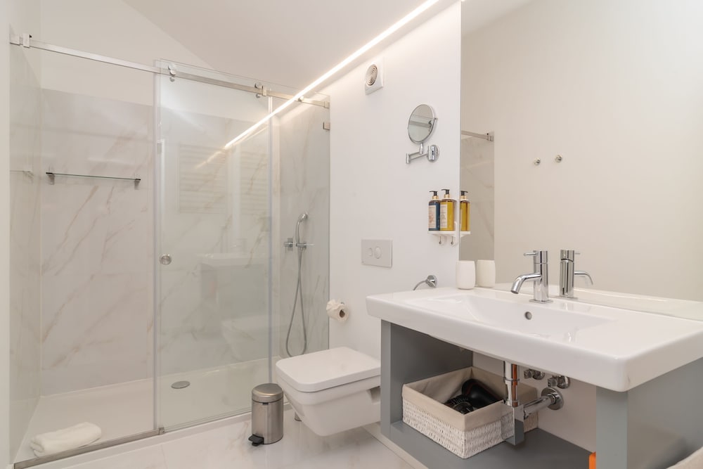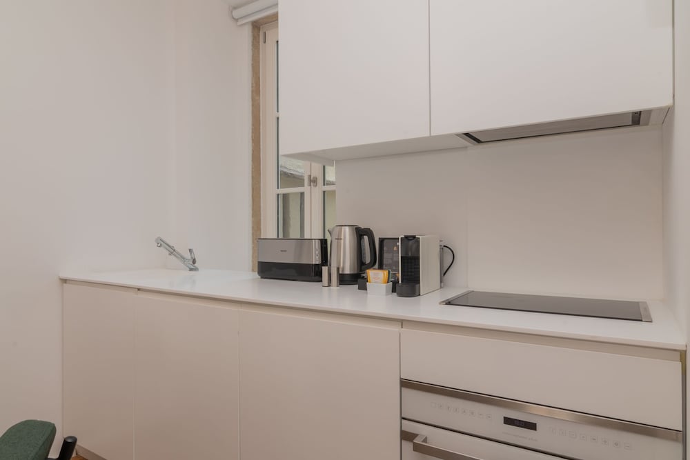 Beautiful and comfortable, steps away from everything you want to visit on your first trip to Lisbon! Huge bed, wonderful shower (takes a little to warm up, but hey!) spacious elevator, really needed for a 3rd floor apartment. The neighborhood is gorgeous and full of life, with a long line of restaurantes on the walkable street, right under your windows, but quit as soon as the sun goes down.
