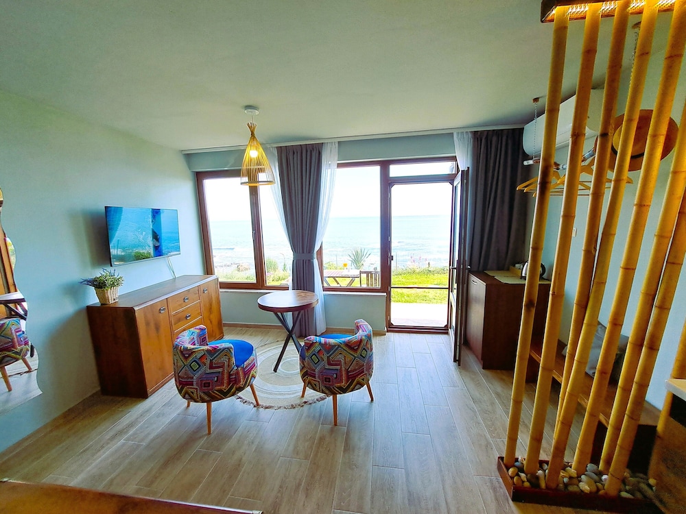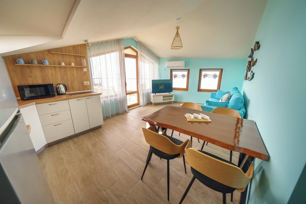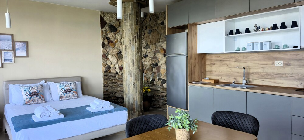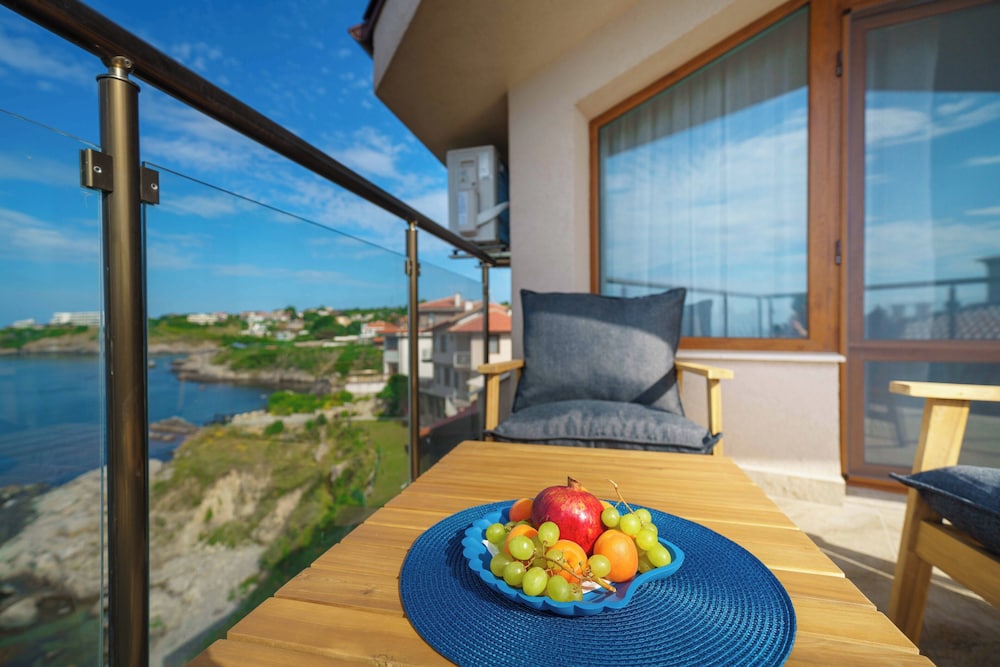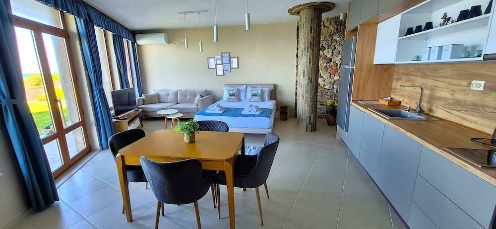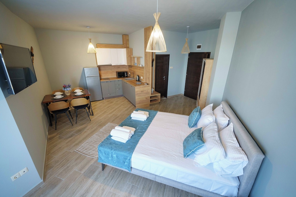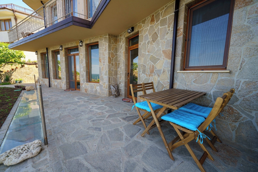 Hervorragende Lage, perfekte Gastgeber, geniales Frühstück - immer abwechslungsreich, jeden Tag mit Liebe von der Gastgeberin Vessela persönlich zubereitet. Sehr gemütliche, saubere und schön eingerichtete Apartments, alle mit Meerblick!