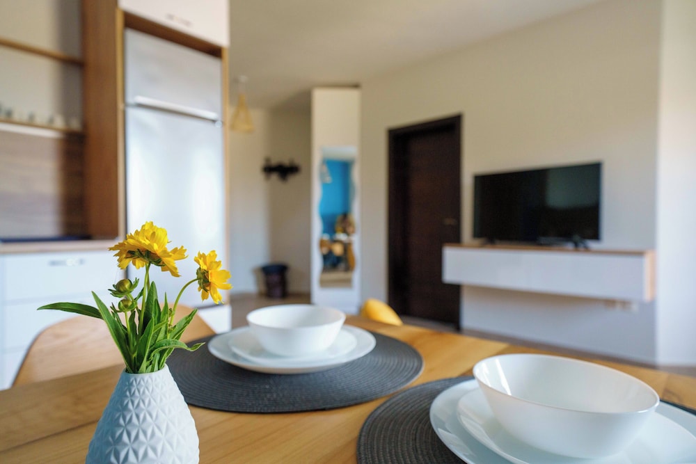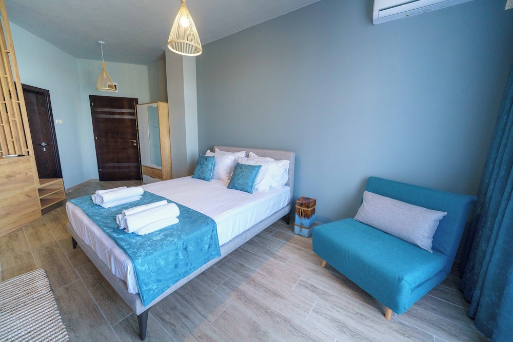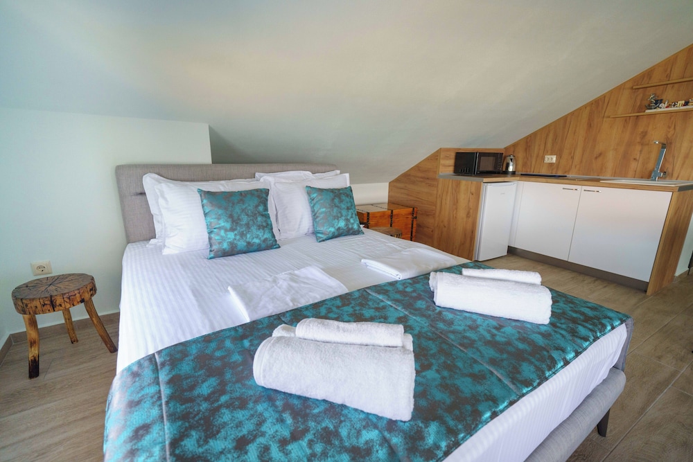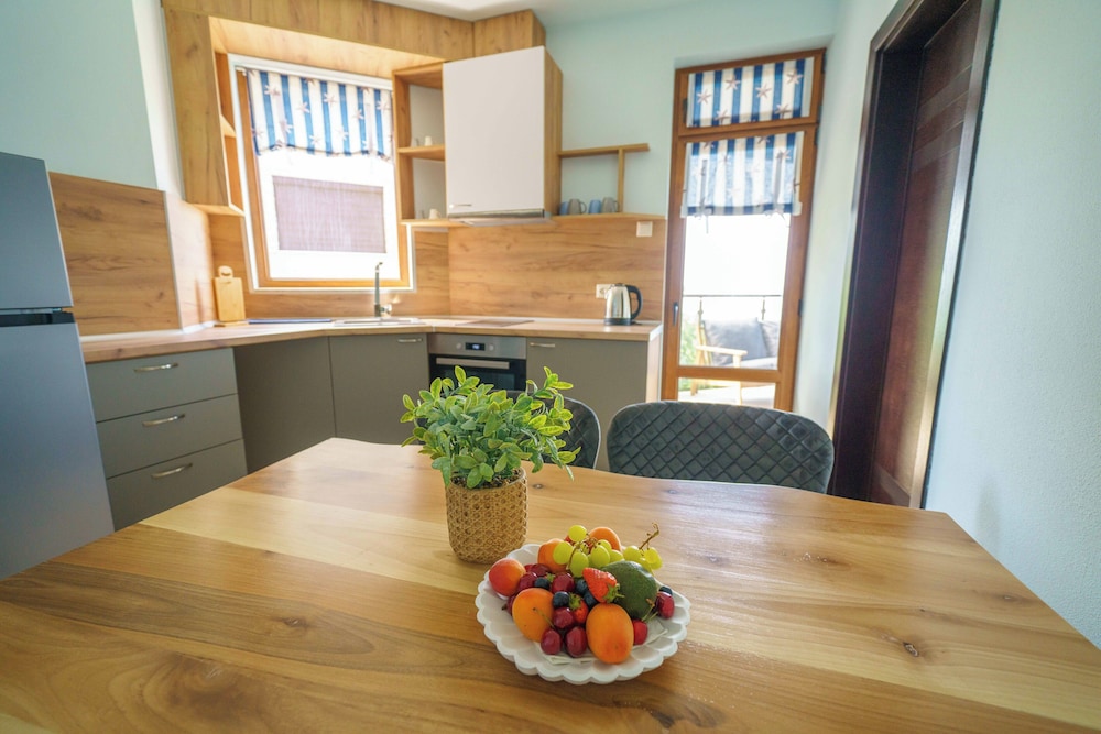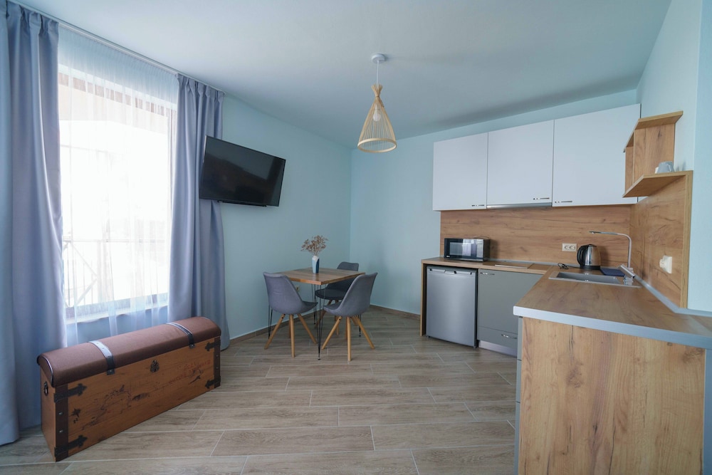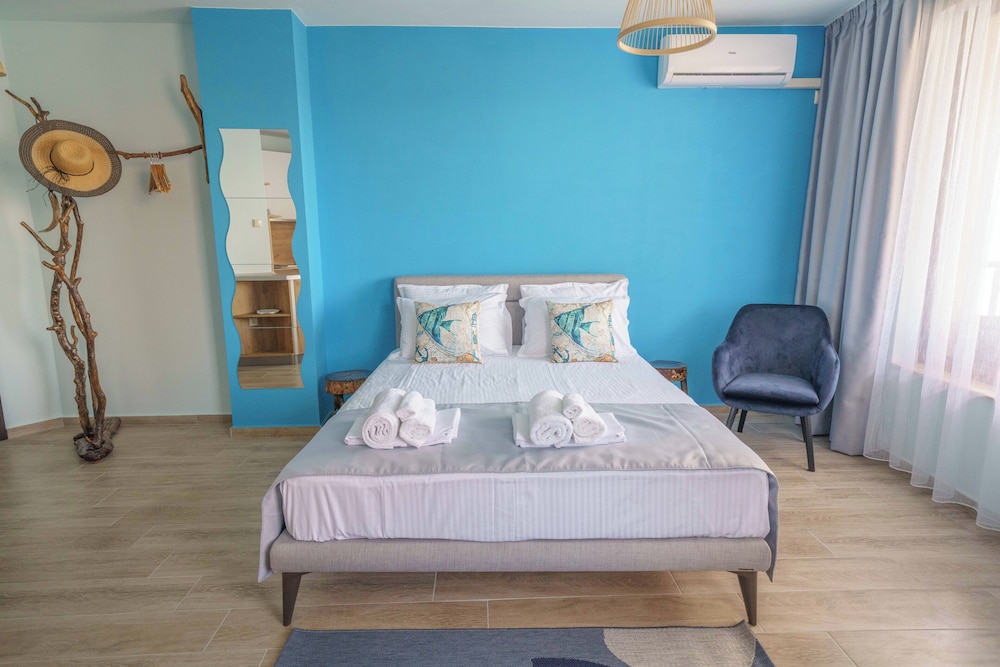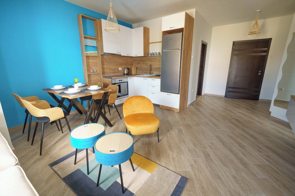Hervorragende Lage, perfekte Gastgeber, geniales Frühstück - immer abwechslungsreich, jeden Tag mit Liebe von der Gastgeberin Vessela persönlich zubereitet. Sehr gemütliche, saubere und schön eingerichtete Apartments, alle mit Meerblick!