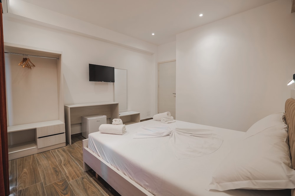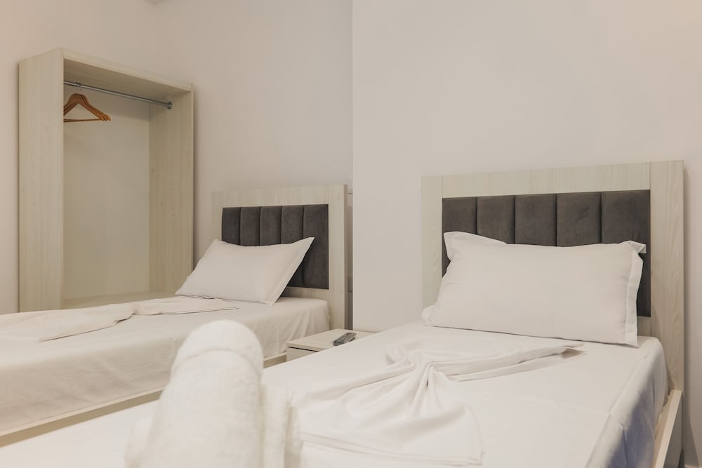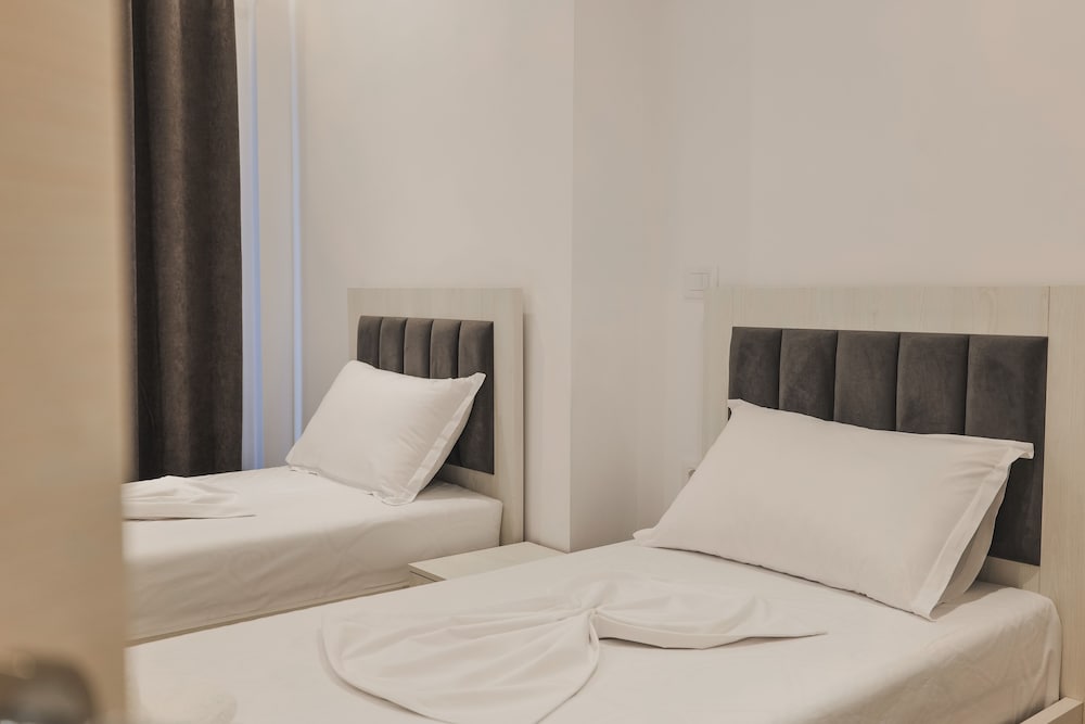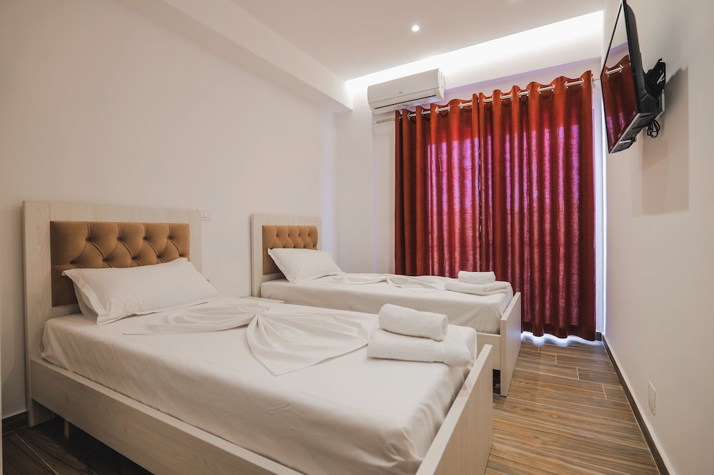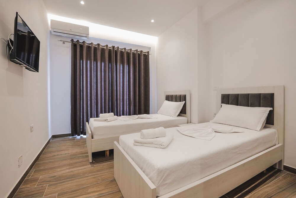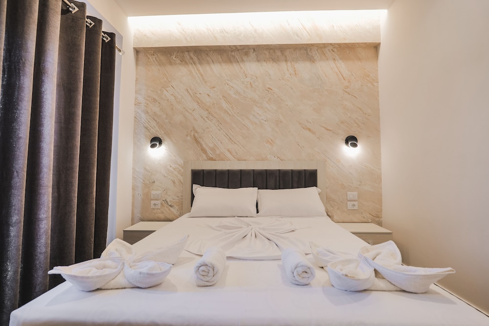 A very new hotel only opened for a week when we stayed. Staff very friendly and everything is new. The hotel is located in a very quiet area about 5 mins drive from centre of Ksamil. We had a car so not an issue. Hotel doesnt have a restaurant or bar so no breakfast can be provided.