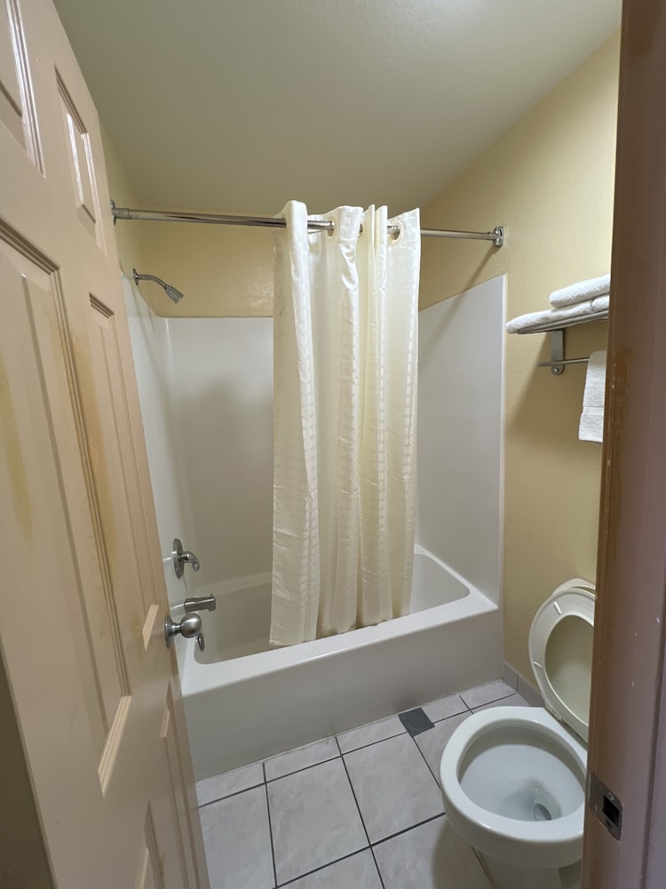 If I could give this place, no stars I would. I think a food truck has more room inside than my hotel room here there were ants in the bathroom the caulking all around the bathtub and drain was cracked and missing in places. Hair on the toilet and in the bathtub and not from anybody’s head, One of the people who worked there told me a guy lived in that hotel room for three years Prior to them, renting it out. There was no soap no shampoo no extra toilet paper. I would not recommend staying here even for the price.
