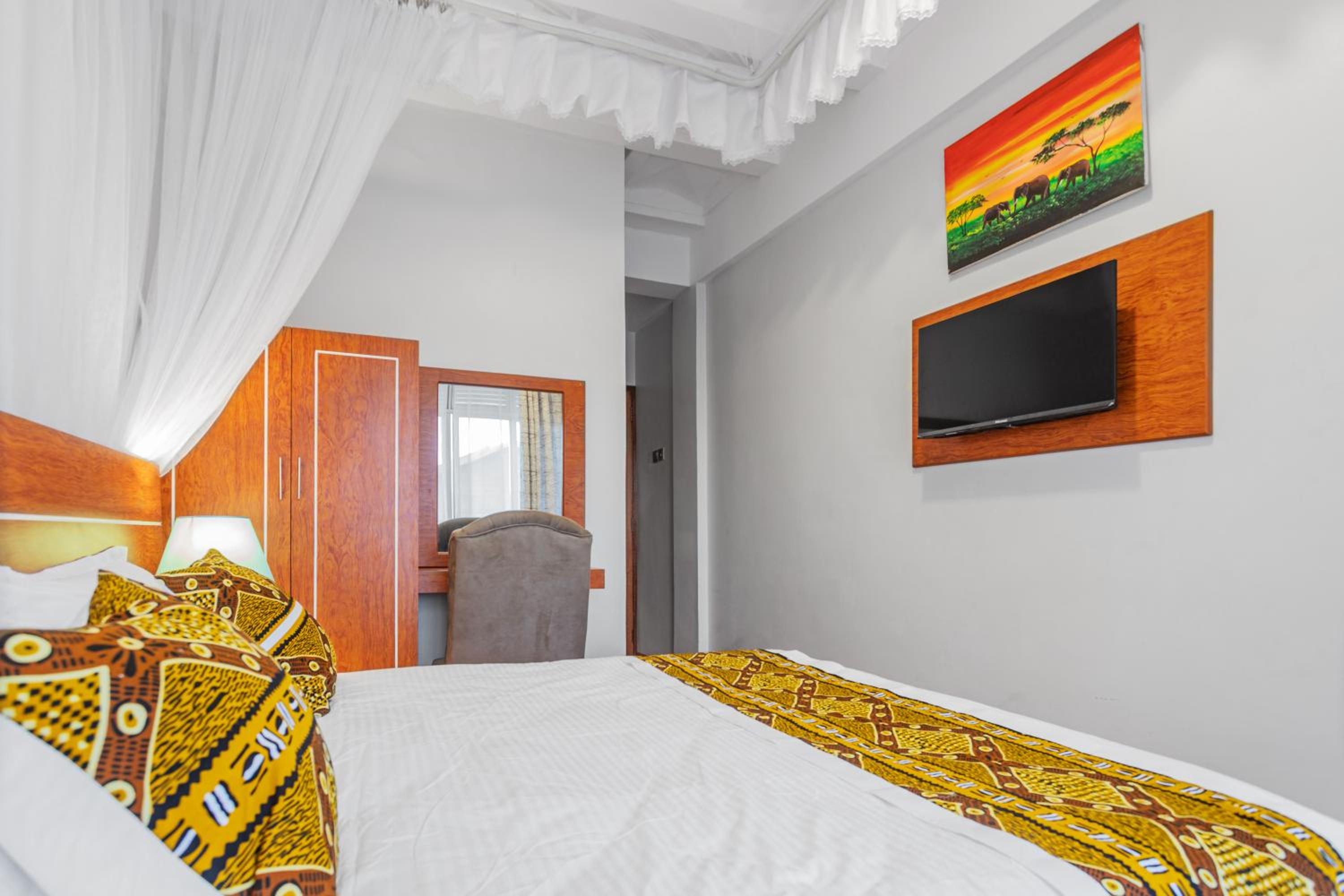 Ambrosia Heights in Entebbe offers well-appointed air-conditioned rooms with modern amenities like a flat-screen TV and a private balcony. Guests can enjoy a comfortable stay with room service and a 24-hour front desk available.