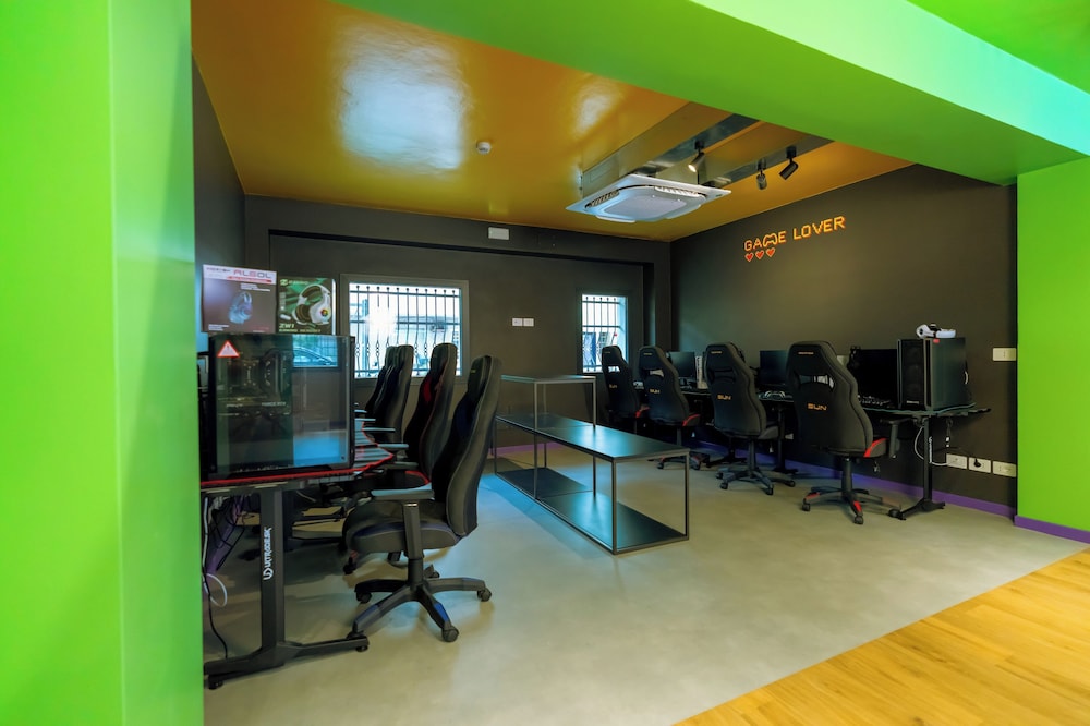 Интересный отель с компьютерными играми.