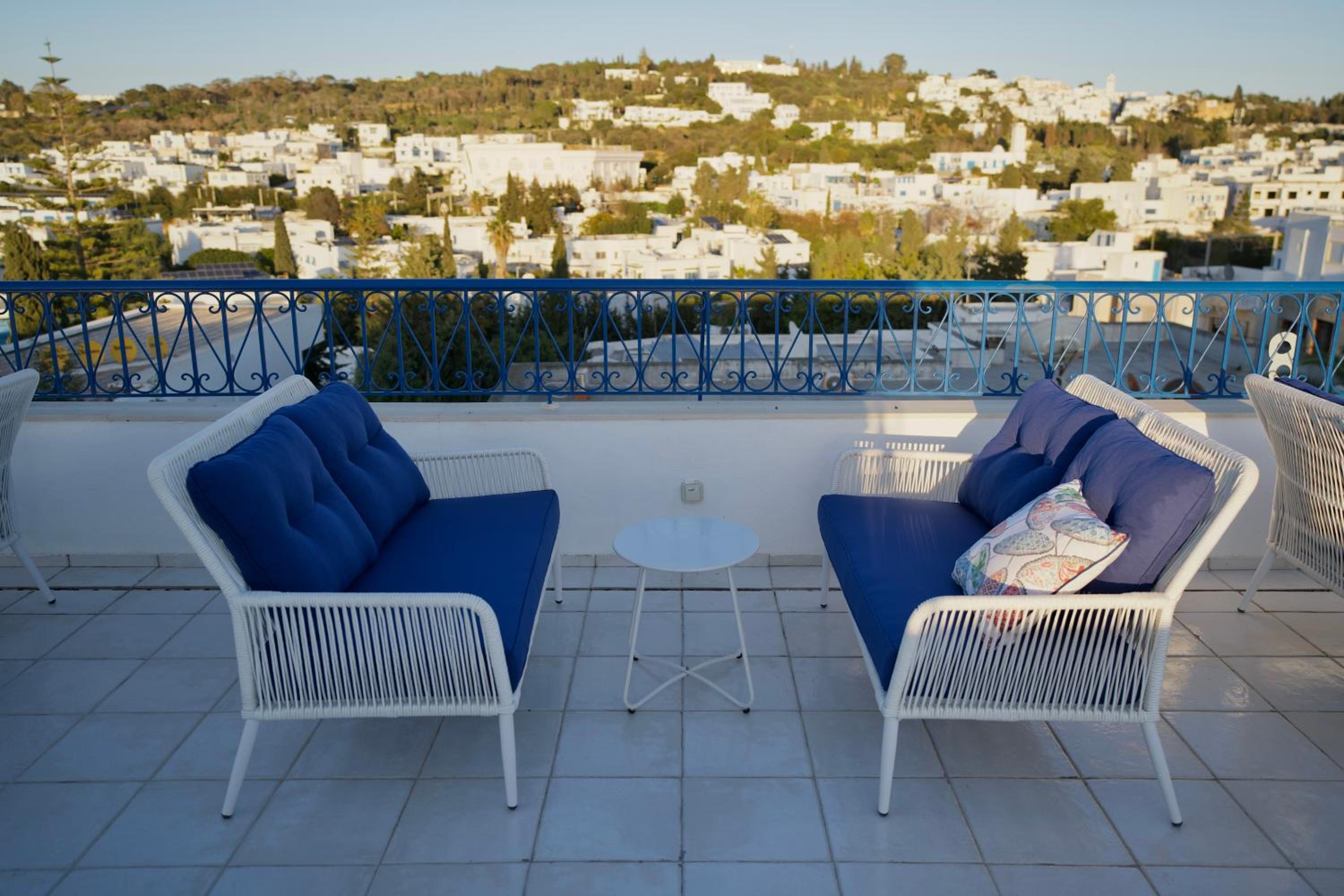 La situation est très agréable au centre de Sidi Bous Said. Le personnel est top, très accueillant et prêt à aider avec gentillesse et efficacité en toute occasion, plein de petites attentions. Le petit déjeuner est copieux avec des salades et des fruits.