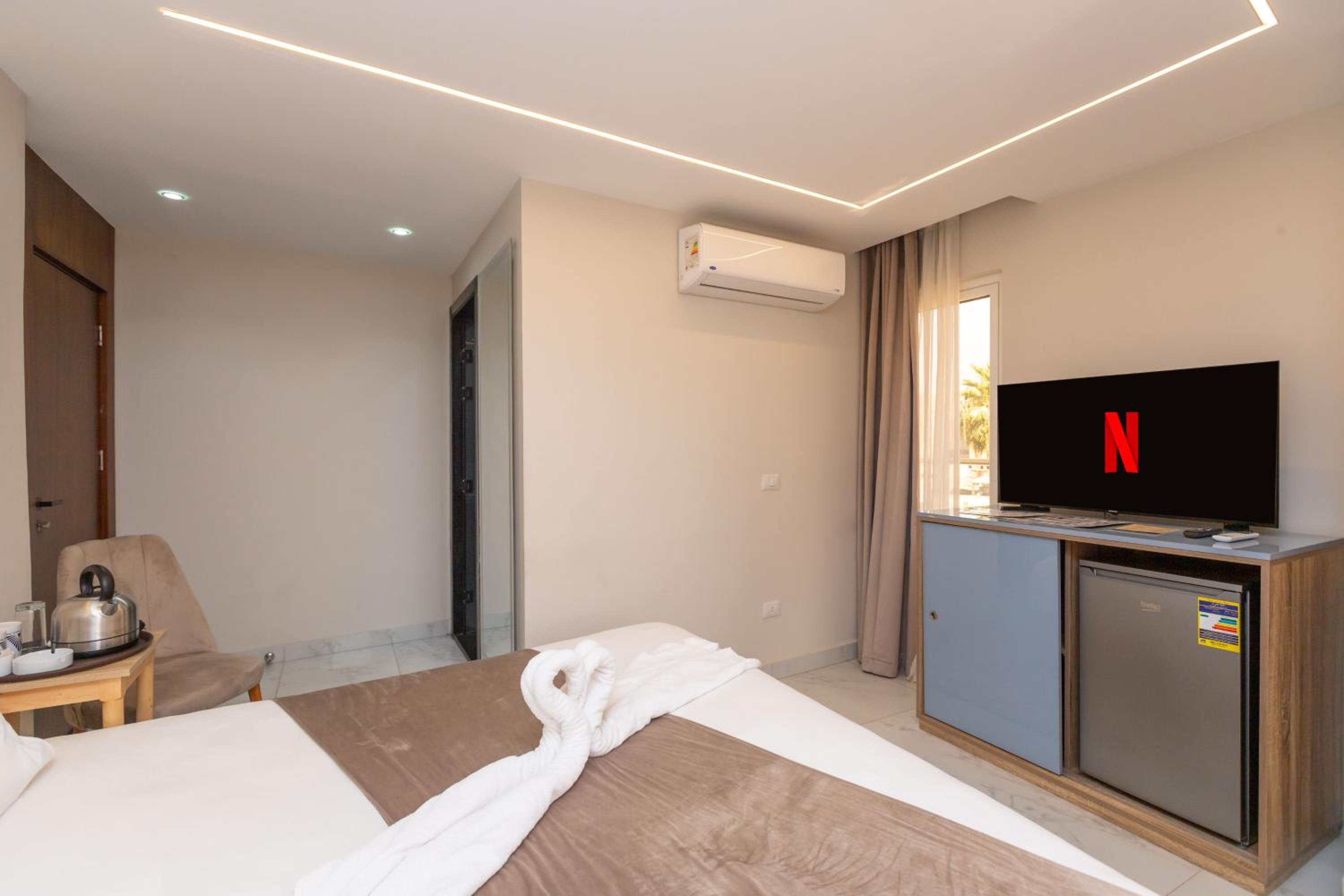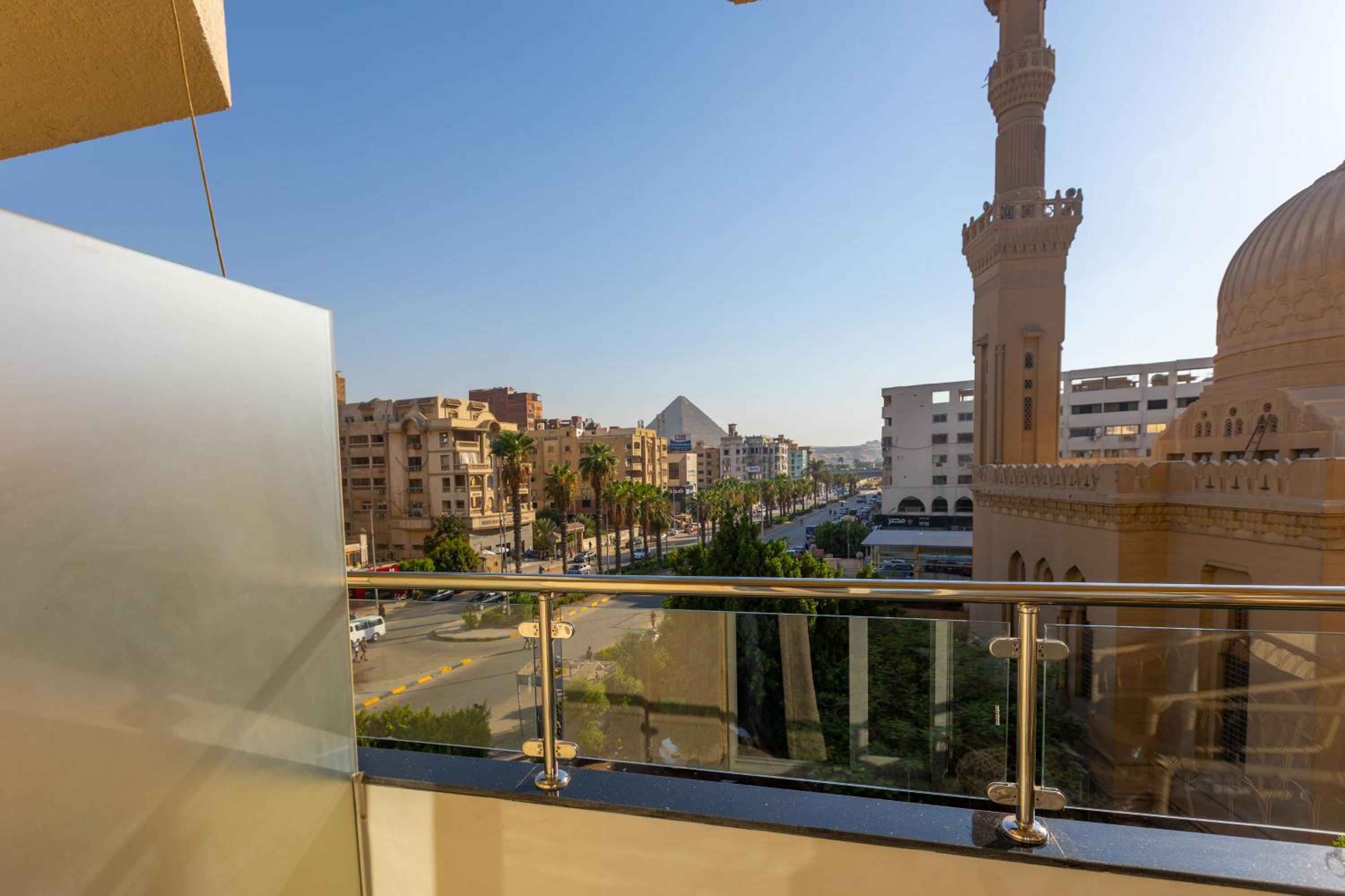 El hotel está en una de las mejores ubicaciones, desde el balcón de mi habitación veía las pirámides. Está limpio y súper bien cuidado. Es un hotel completamente nuevo y cuidadoso con todos los detalles. La zona tenía muchos comercios para comprar agua, refrescos, snacks… cerca, además de restaurantes de comida rápida