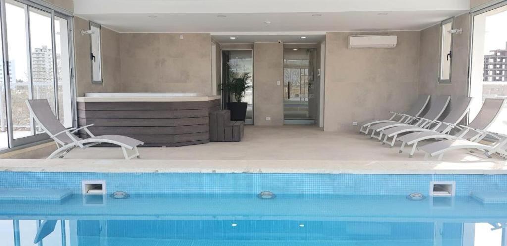 Nos gustó todo! Lo único que agregaría son algunas sillas plegables en los balcones a los costados de la pileta por si alguien desea tomar sol, porque las Reposeras de adentro son pocas y enseguida se ocupan.