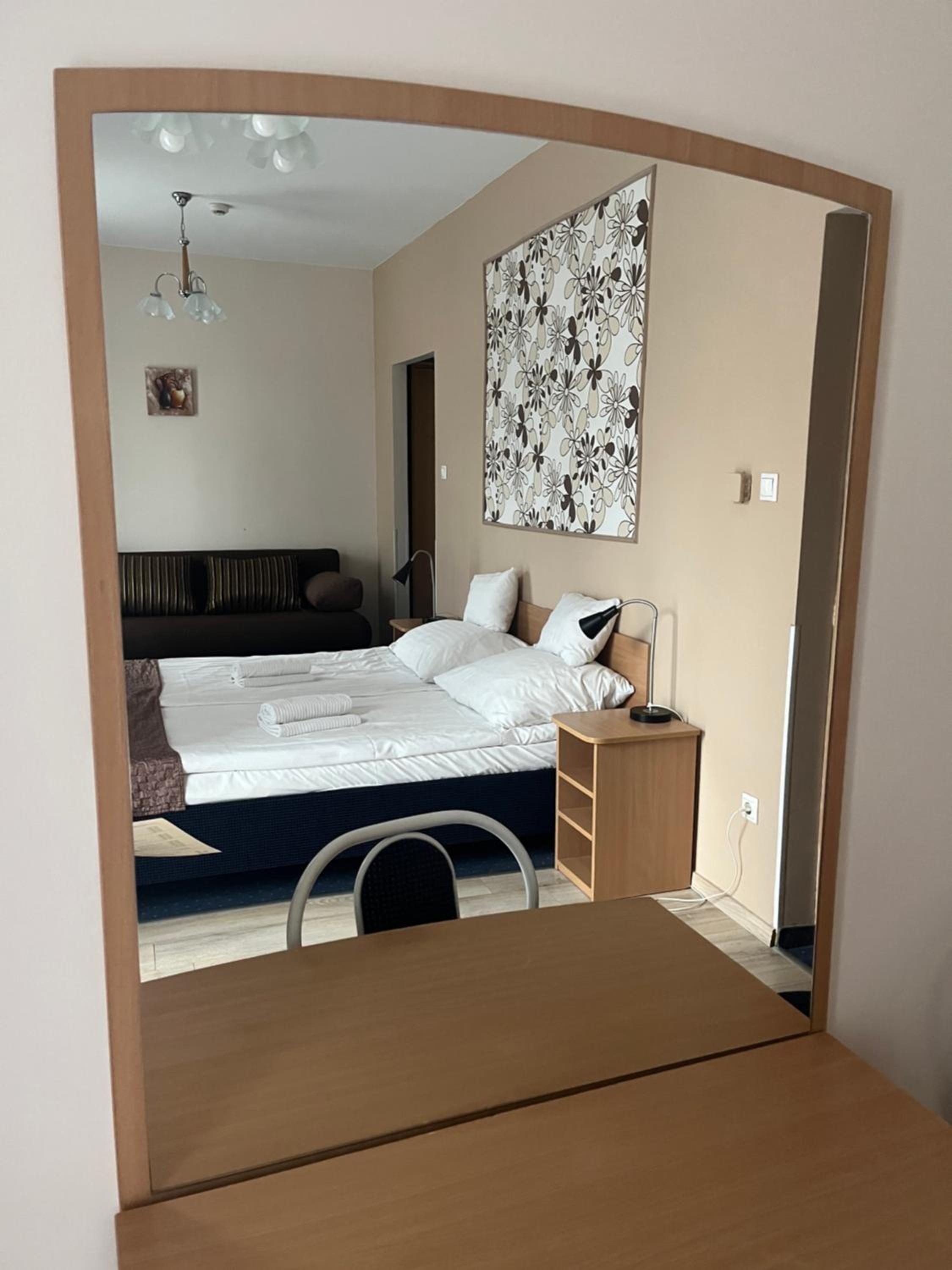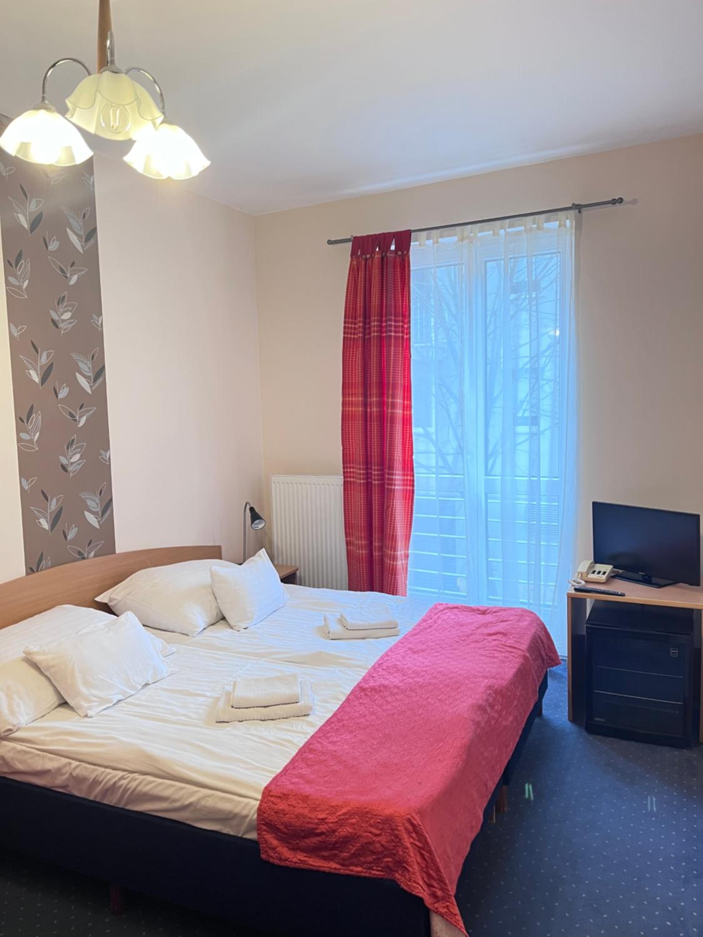 A recepciós hölgy kedves volt. Nyitott ablak mellett sem volt zajos az utca éjjel. Közel volt gyalog az Átrium színház.
