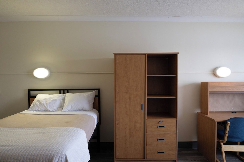 Clean college campus style room. Well stocked with towels. Nice to have a fridge. Nice, friendly and helpful staff at the front desk. Only thing I wish they had was a TV in the room. Other than that it was a comfortable and relaxing place to stay.