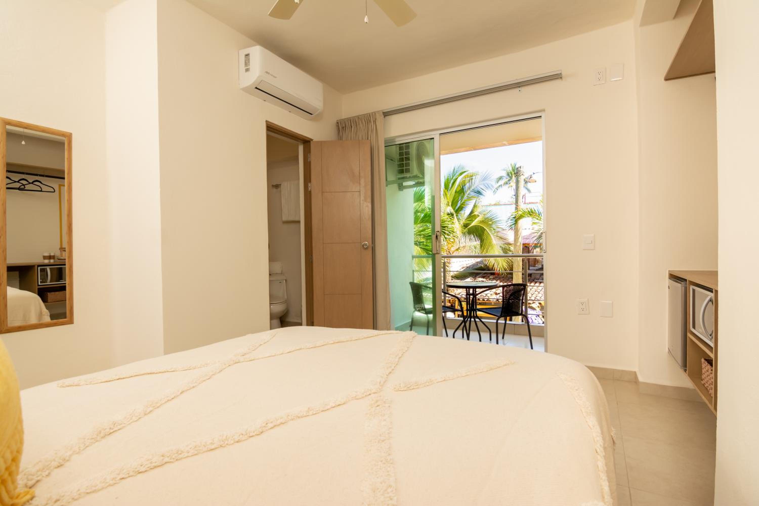 Relax in our air-conditioned rooms equipped with modern amenities such as a fridge, microwave, and coffee machine. Feel at home with a private bathroom, free toiletries, and some rooms even feature a balcony or sea view.