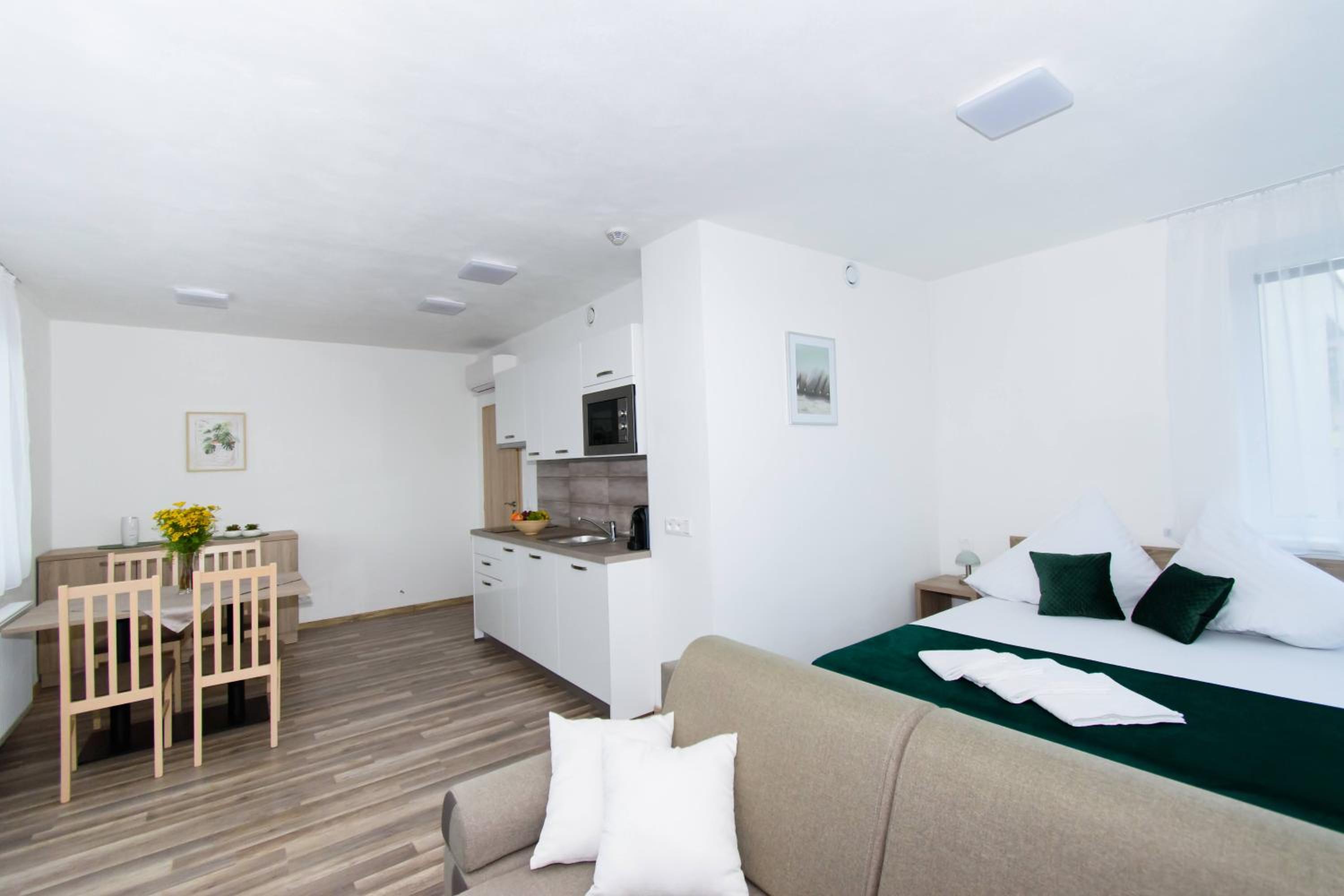 Tichá lokalita, izba vybavená moderne a bola aj čistá. Matrac trošku mäkší, ale inak super. Raňajky boli bohaté na výber.