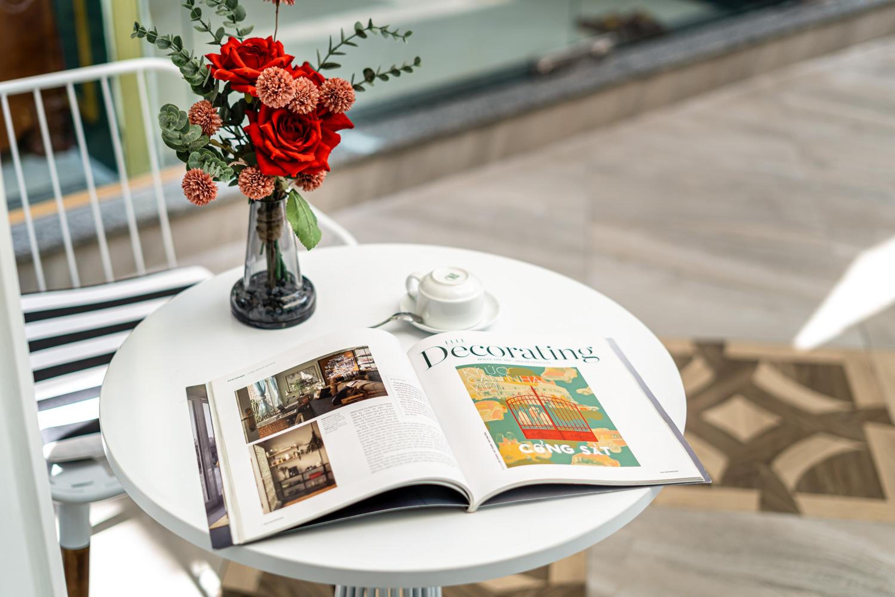The rooms are cute and the decor is quite nice. There's a balcony to sit outside and there's seating inside as well. It was a quaint and comfortable stay.