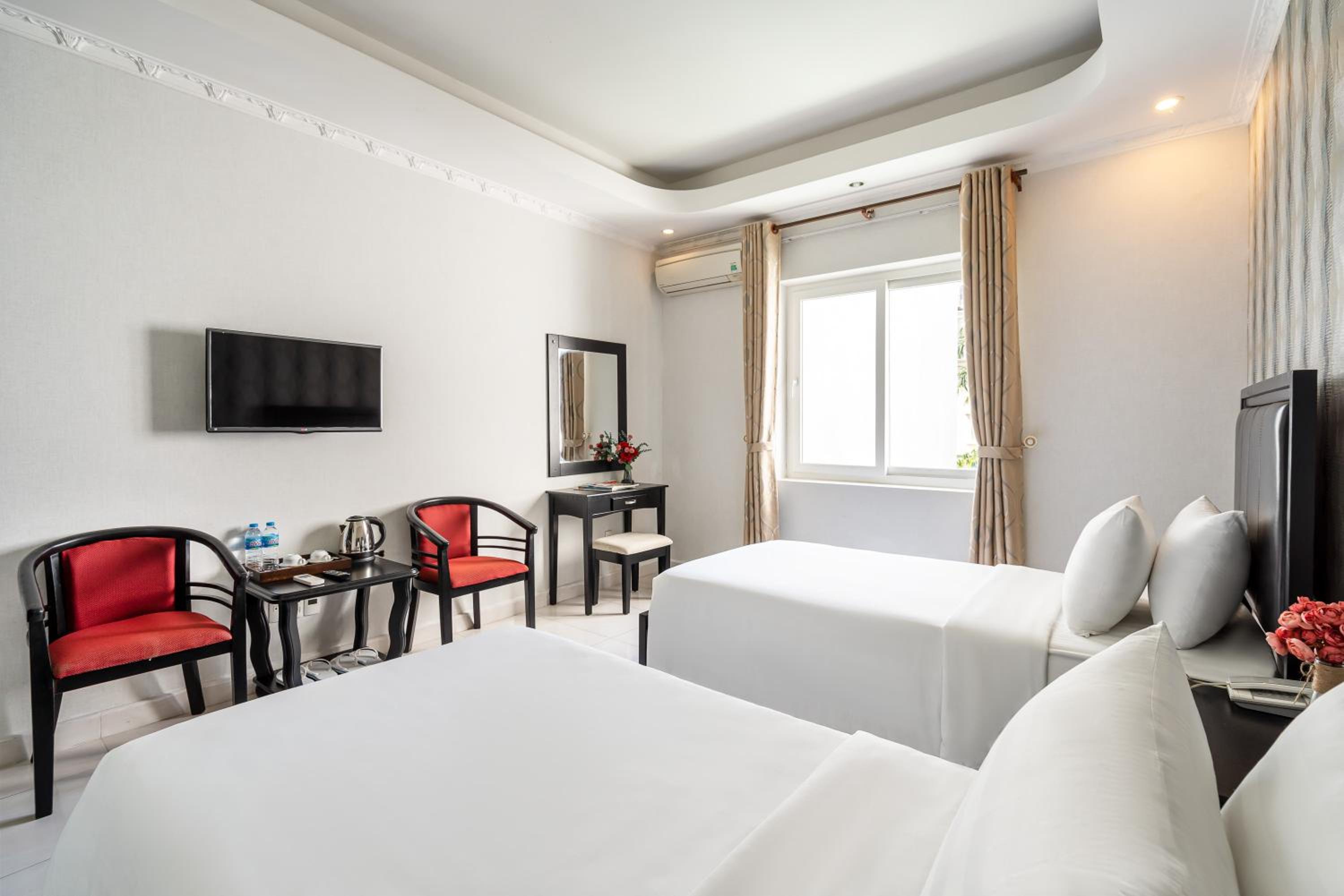 Better size room than others in Vietnam at a comparable price and included a lounge, desk and window. Many don't. Very quiet location and excellent staff who are happy to assist with tasks such as free laundry. Good cafes and malls close by for westerners who are scared of exotic or street food.