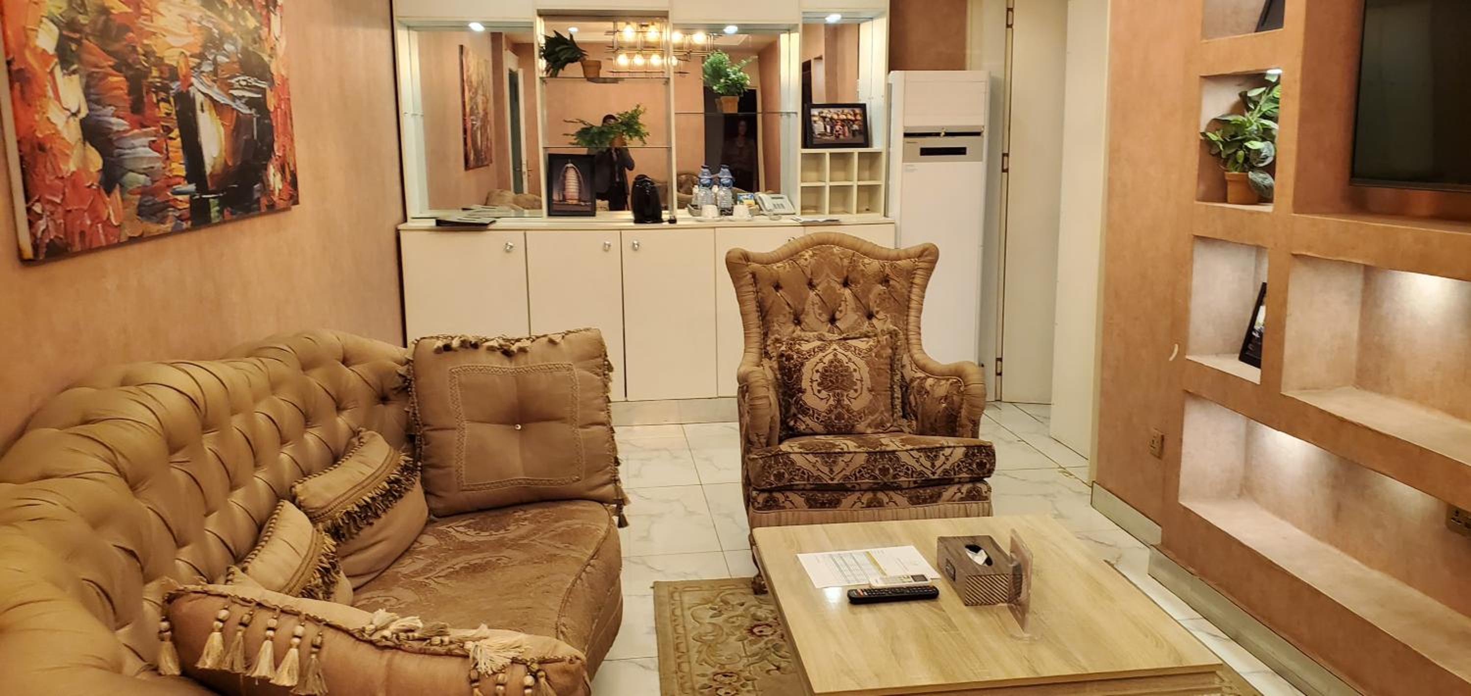 The issue is the room I stayed in. Liked the vintage furniture. There were health and safety risk within the room ie the fridge cabinet door was damaged could not be closed, same with the shower door. There was a persistent awful and disgusting smell from the toilet /shower room. Convenience was poor ie something as simple as a bed switch for the light was absent.. The room internal walls and door were stained, dirt behind the bed, holes on parts of the wall paper, and more.