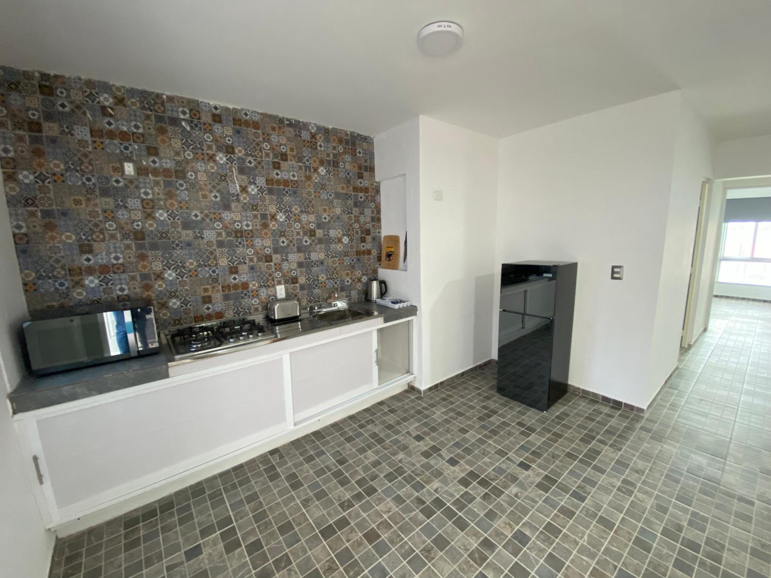 El estacionamiento es limitado, el baño es muuuy reducido se tiene que maniobrar para usar el retrete las rodillas chocan con la pared, no hay closet solo un tubo de 1 metro no hay mesa ni sillas