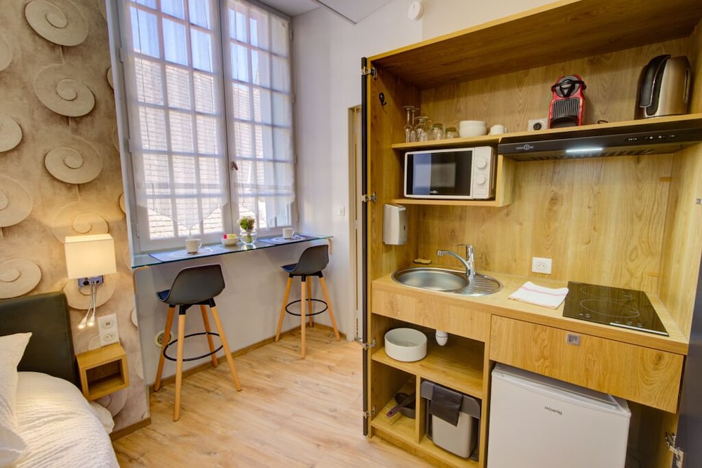 Fantastic place to stay in Sarlat. Location is ideal and the building is beautiful. Very nicely designed and appointed apartment. Comfy bed. Good communication. Kitchen is set up for minimal food prep - fine for a morning coffee and croissant but would not be great if you actually wanted to cook anything. But it does have the basics (would benefit from a wine opener and a knife or two).